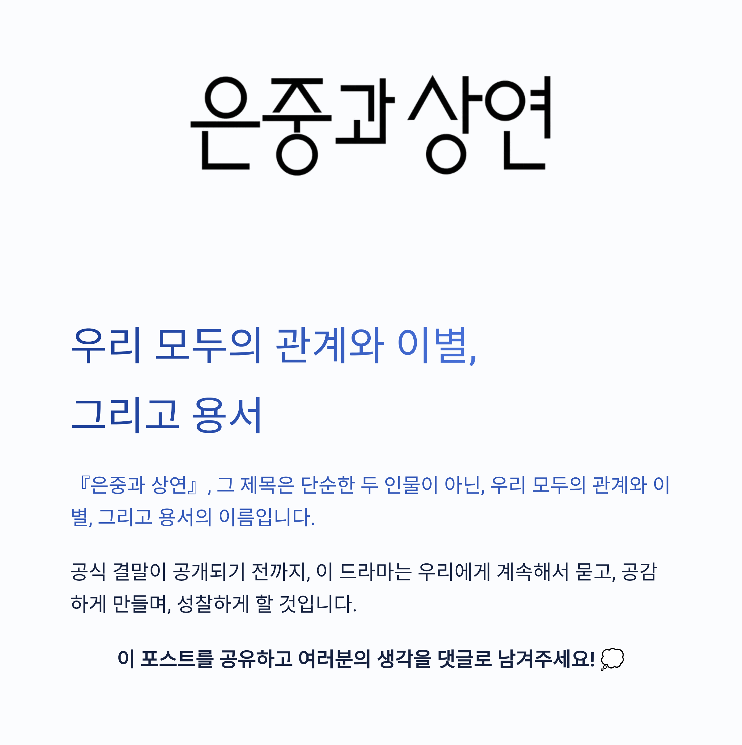💬 결론: 『은중과 상연』은 감정과 관계의 서사 그 자체다