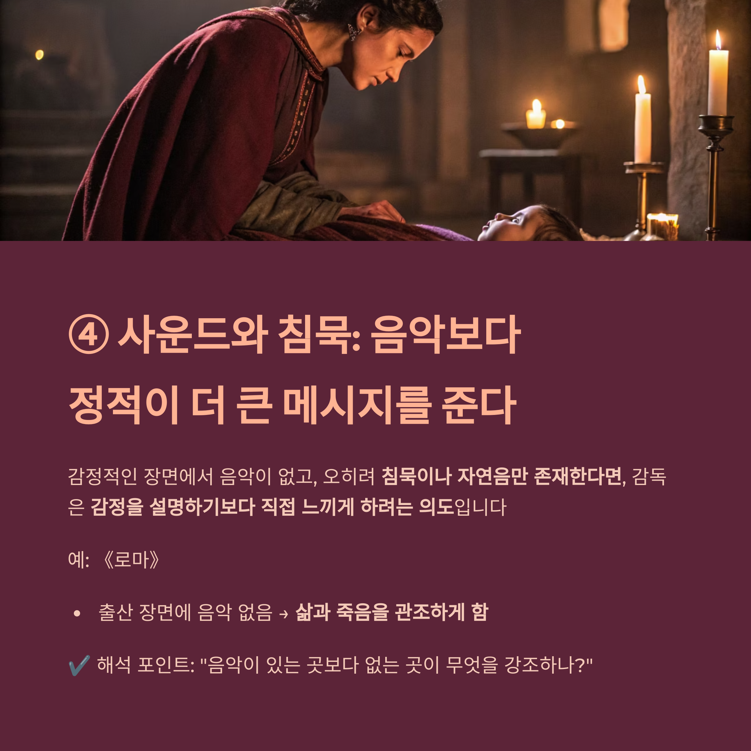 ④ 사운드와 침묵: 음악보다 정적이 더 큰 메시지를 준다