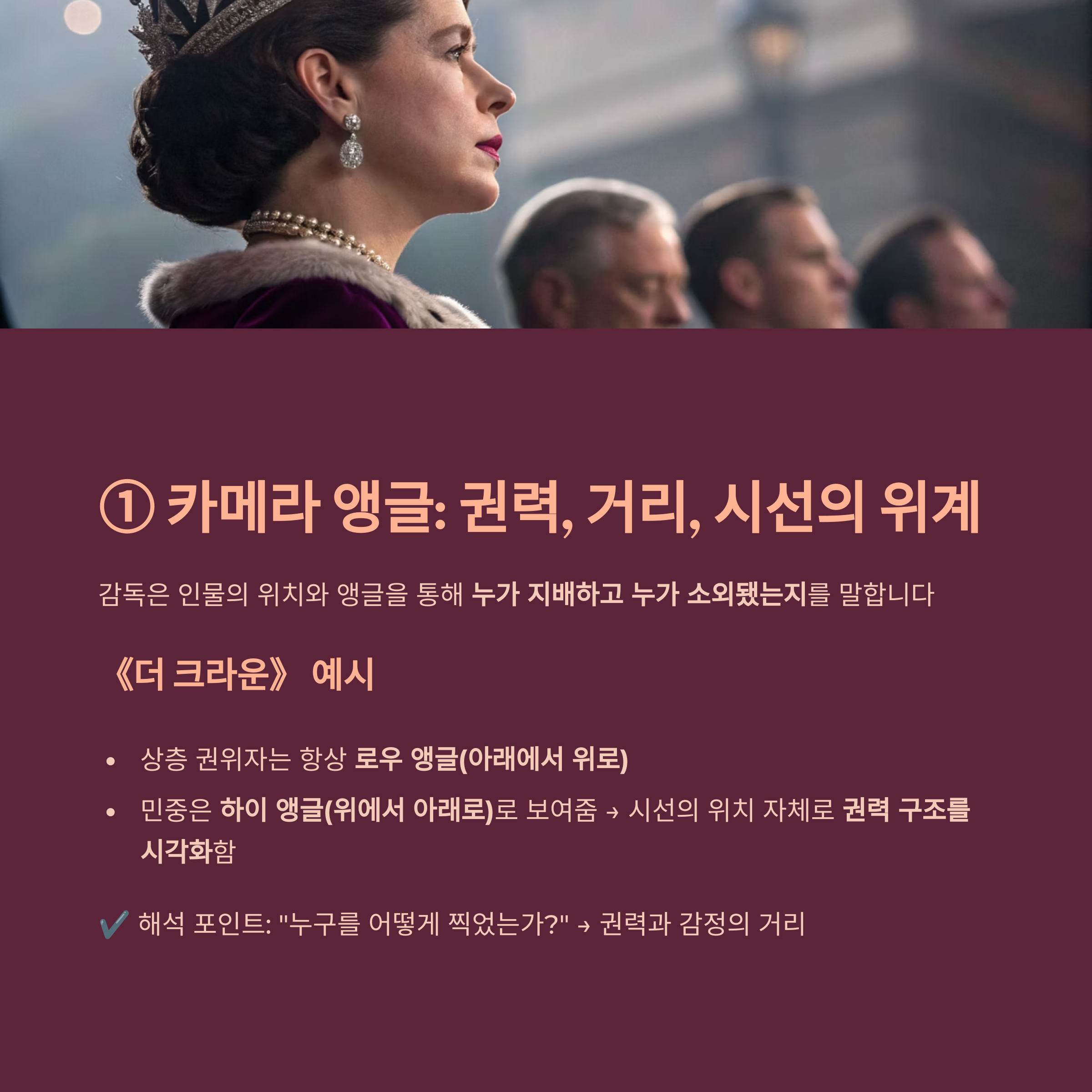 ① 카메라 앵글: 권력, 거리, 시선의 위계
