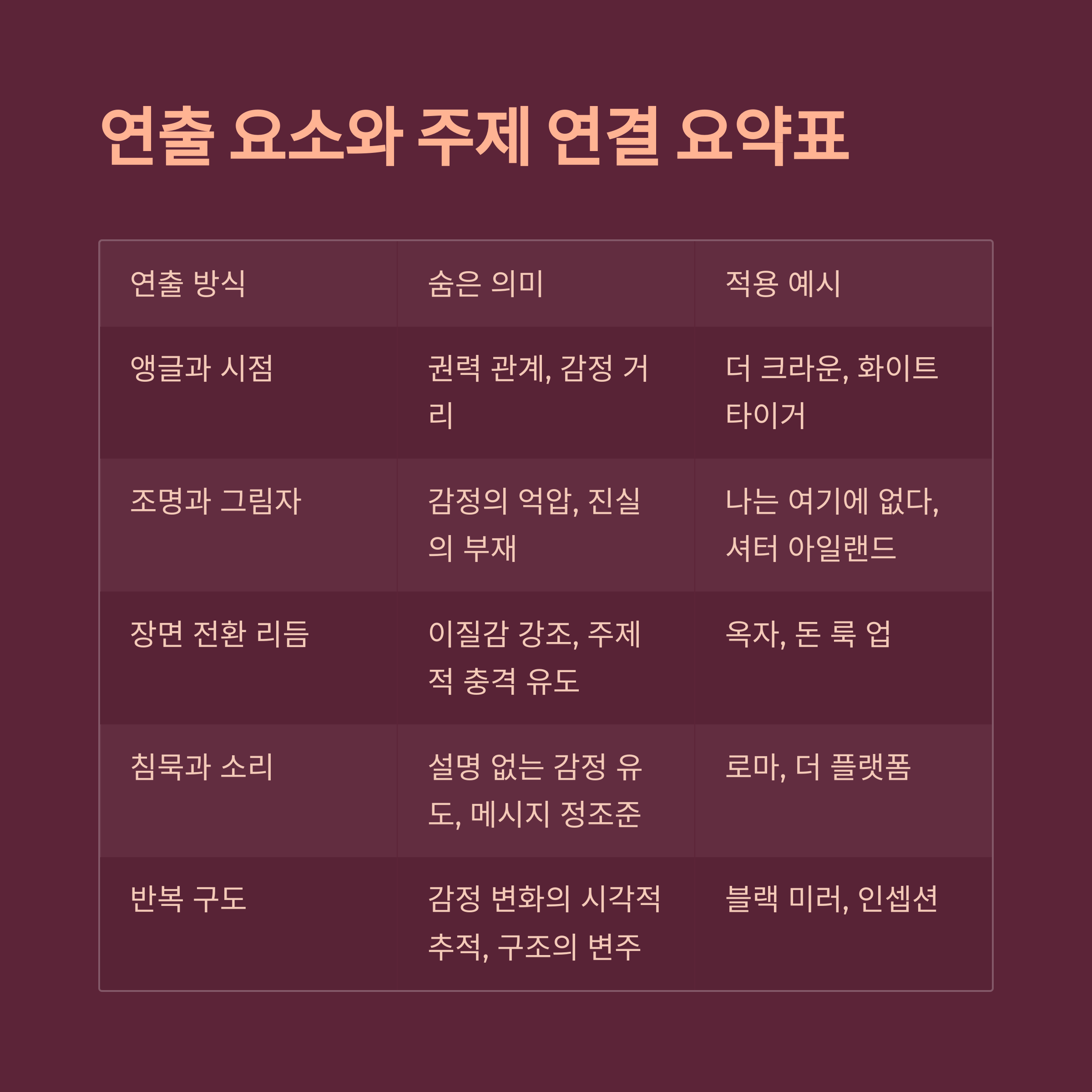 그 답은 줄거리나 대사보다 '연출 방식'에 숨어 있습니다