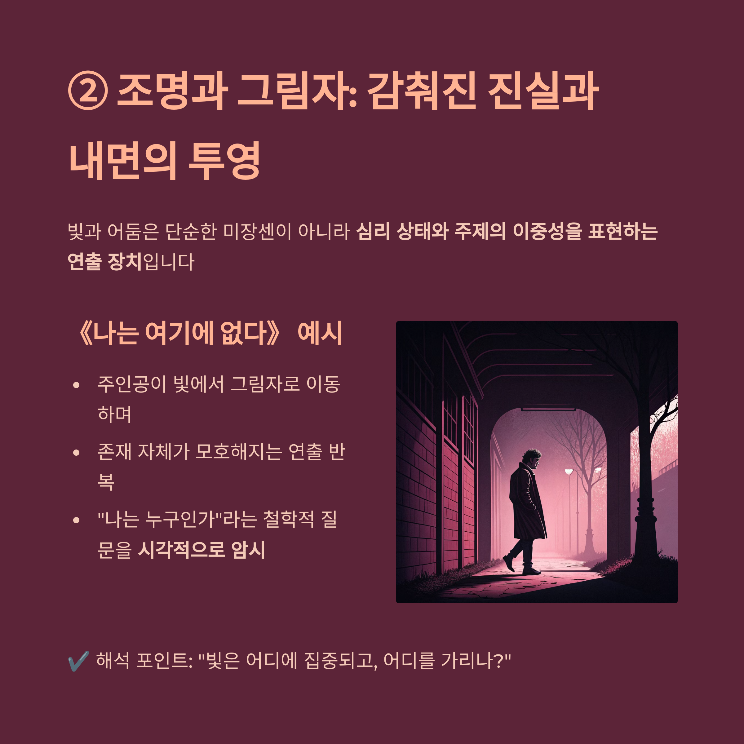 ② 조명과 그림자: 감춰진 진실과 내면의 투영