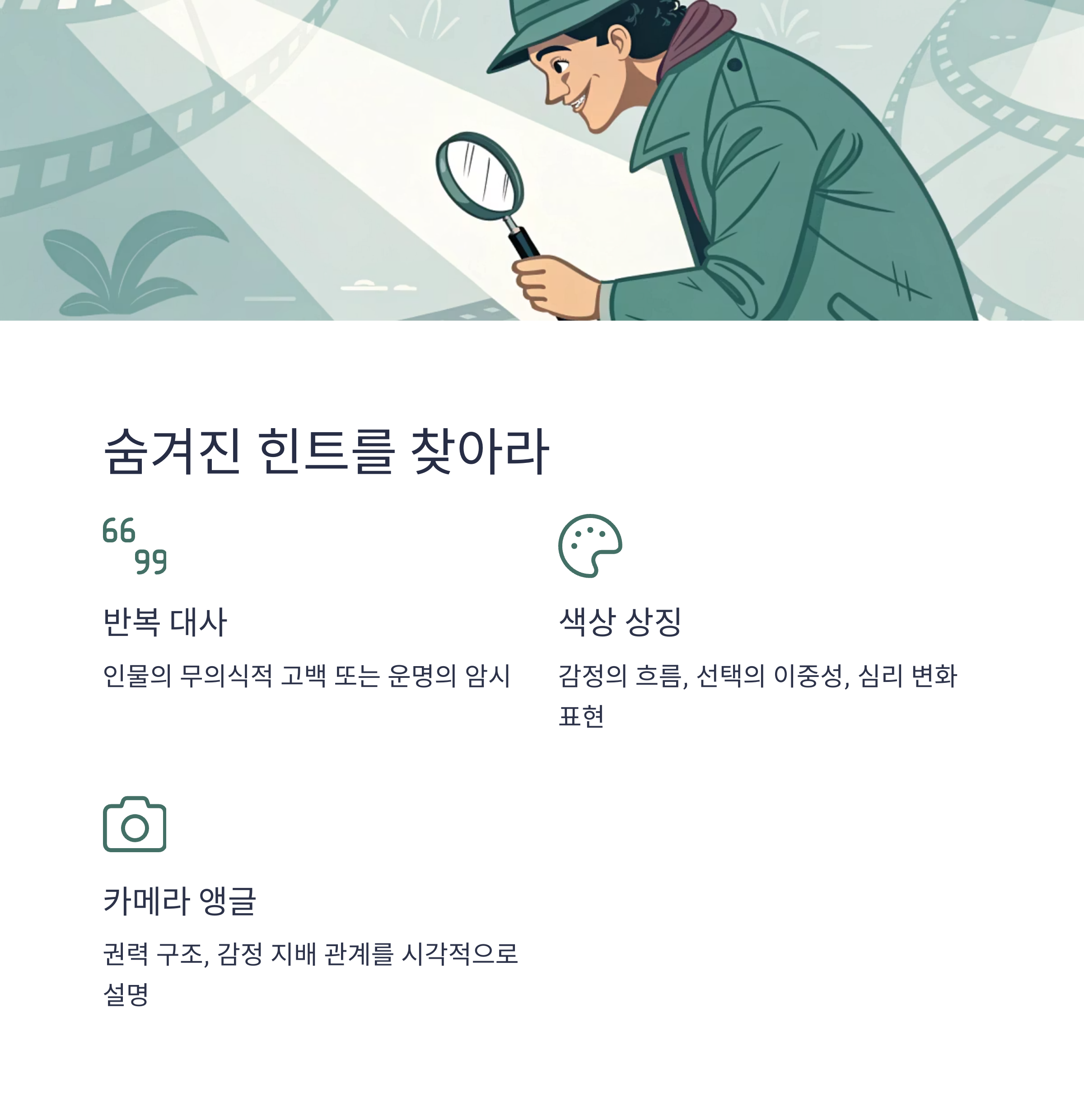 대사와 시각적 장치에 숨겨진 힌트를 찾아라