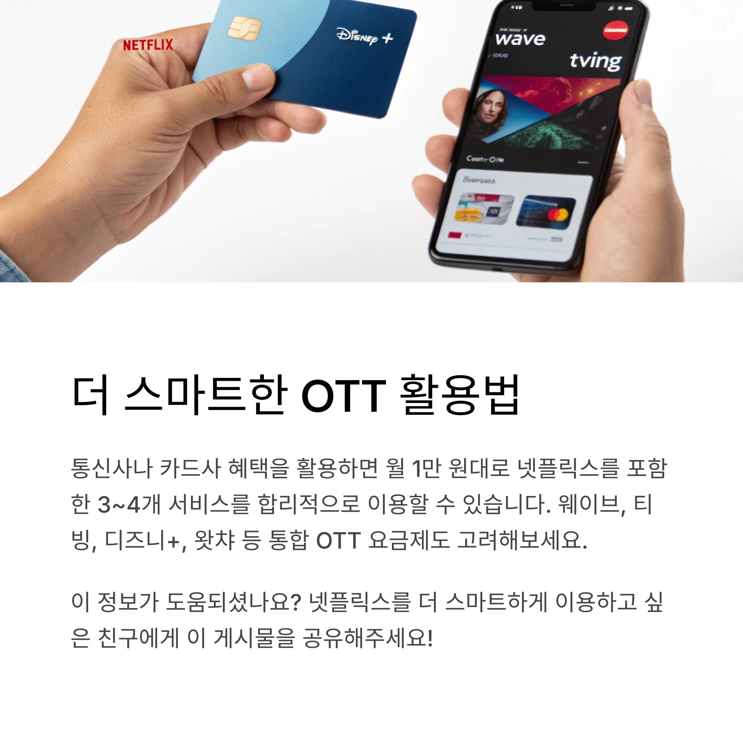 월 1만 원대로 넷플릭스를 포함한 3~4개 서비스를 합리적으로 이용 가능합니다.