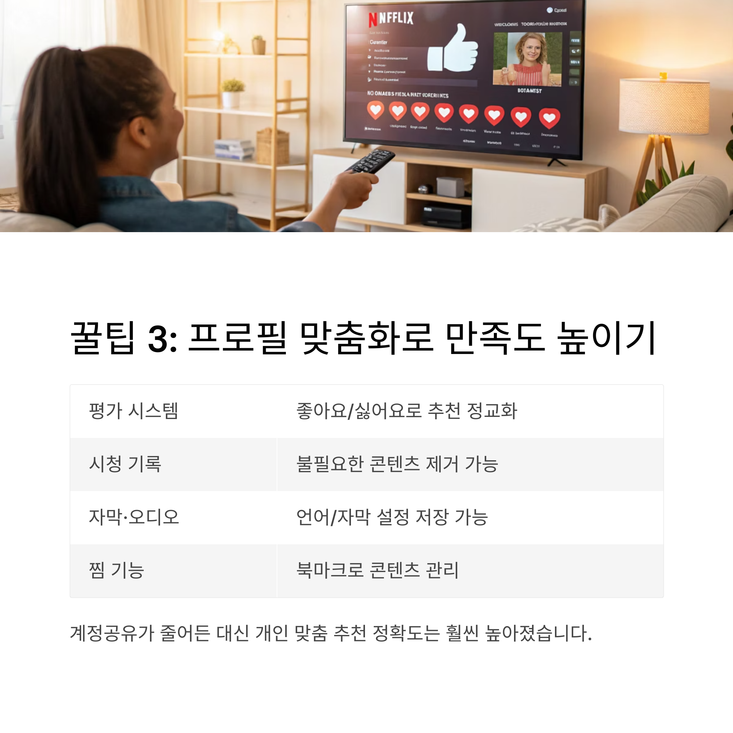 계정공유가 줄어든 대신 개별 사용자 맞춤 콘텐츠 정확도는 훨씬 높아졌습니다.