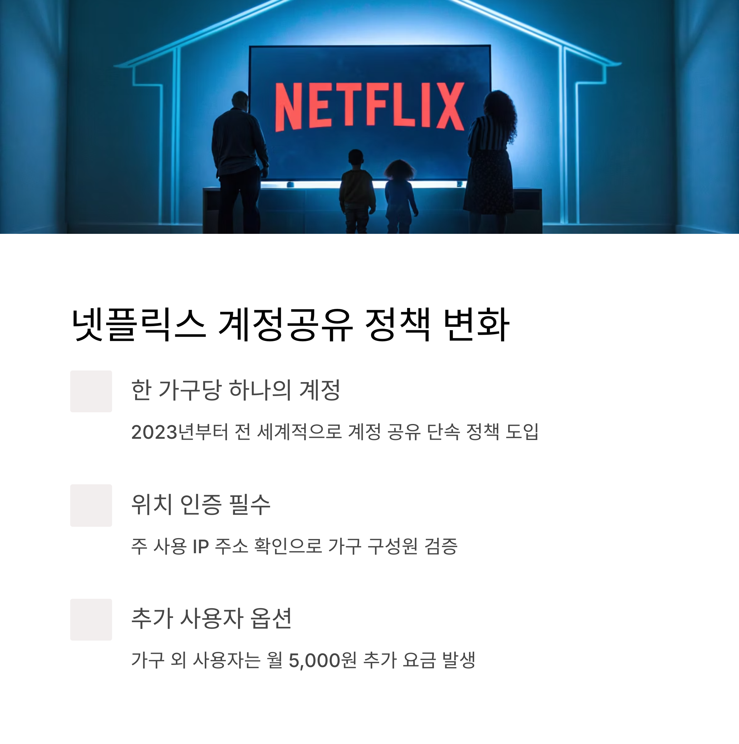 넷플릭스는 2023년부터 전 세계적으로 계정 공유 단속 정책을 본격 도입하며,