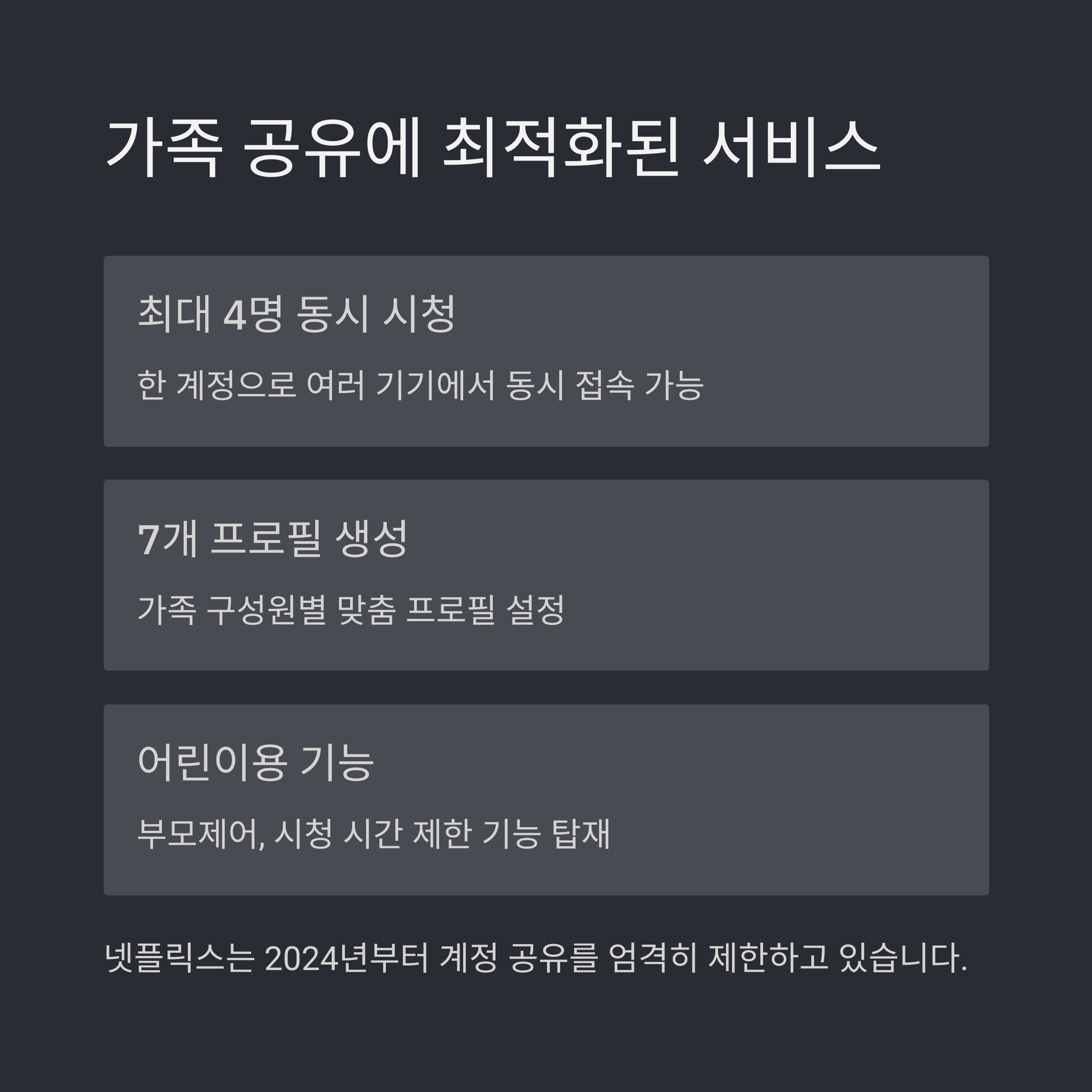 | 동시 시청 | 최대 4명 | 요금제 제한 + 공유 차단 |