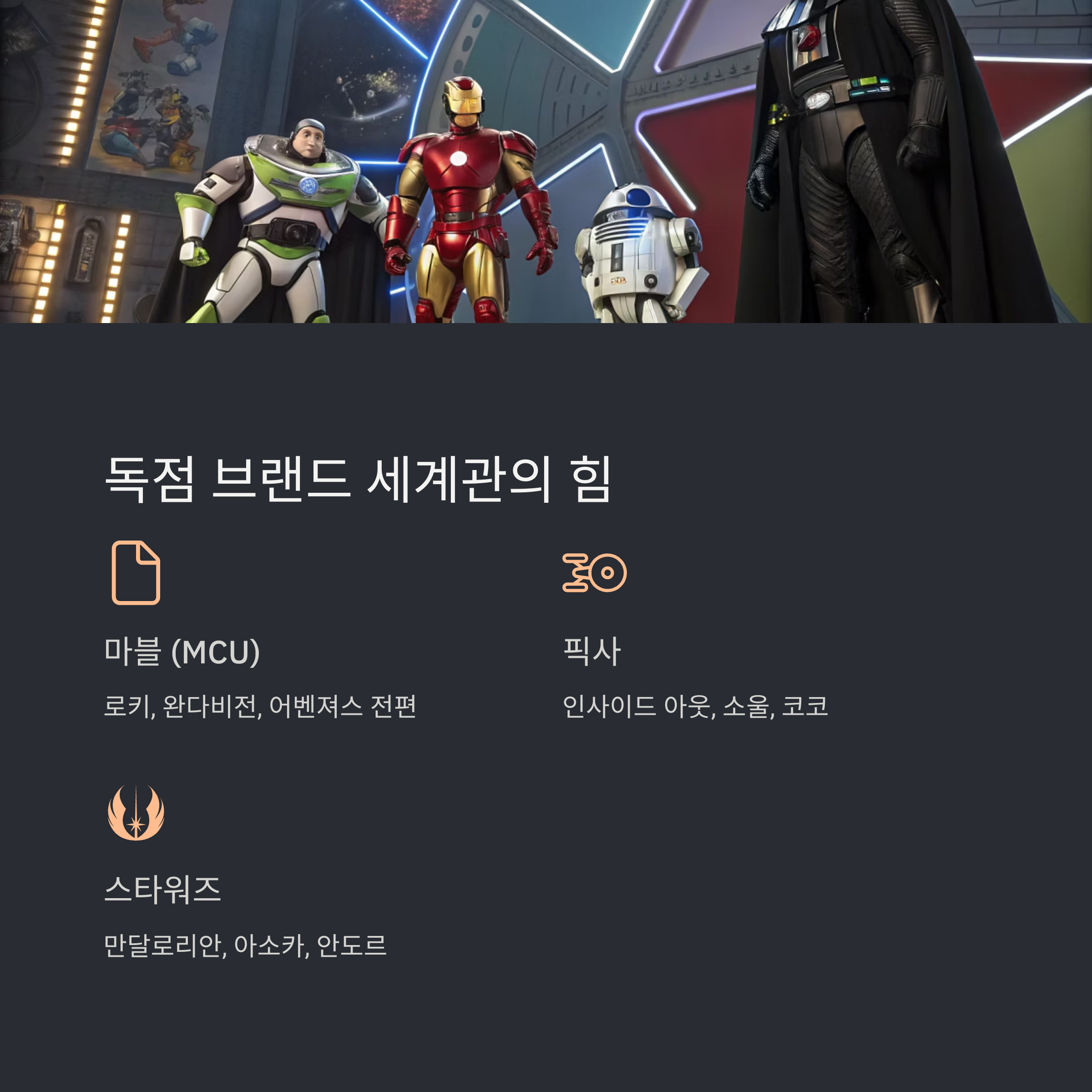 3. 마블·픽사·스타워즈 등 독점 브랜드 콘텐츠