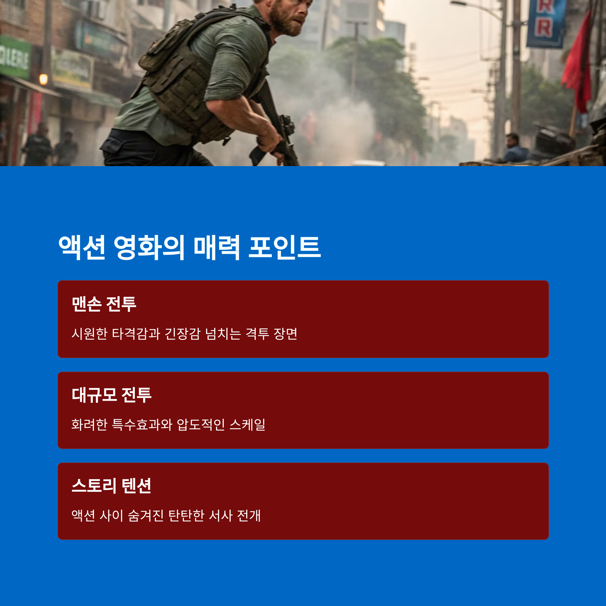 액션 장르는 빠른 전개와 확실한 갈등 구조가 중심입니다