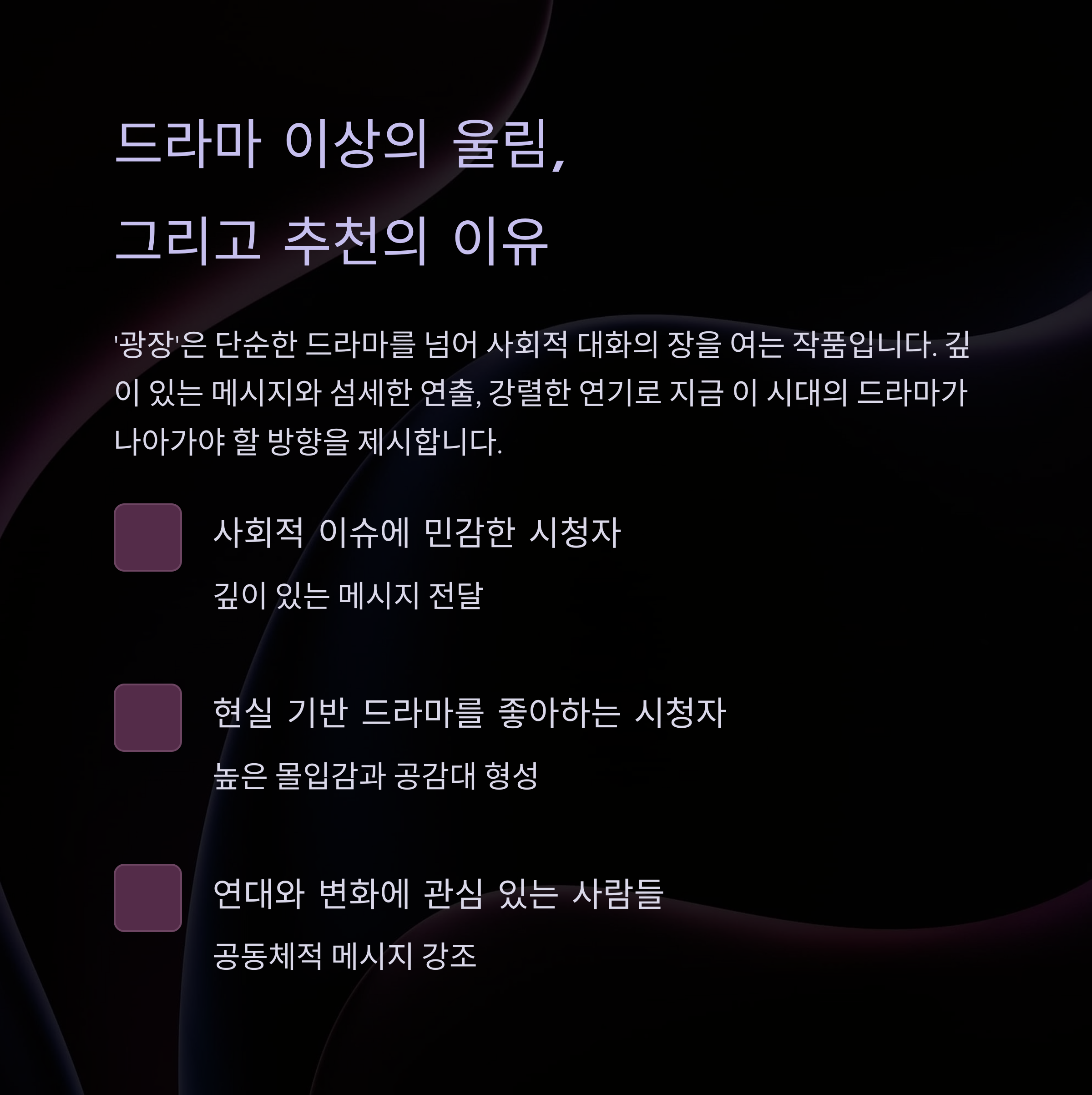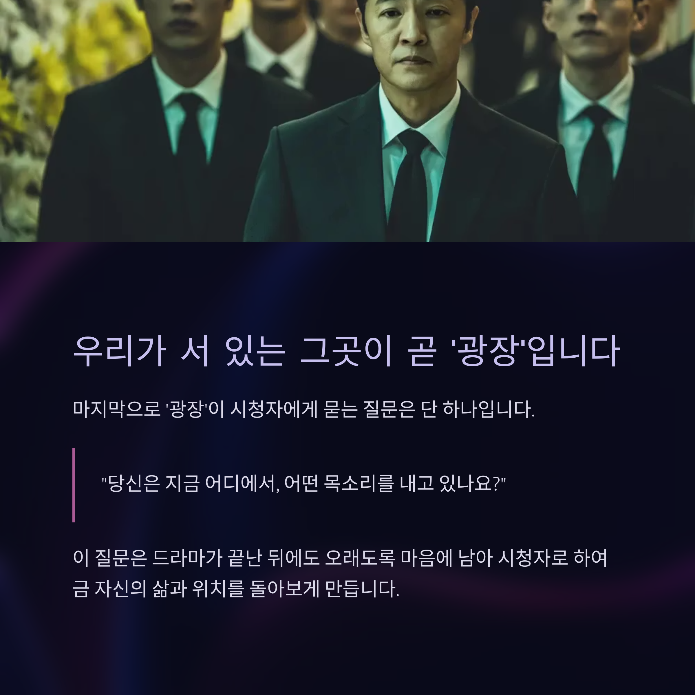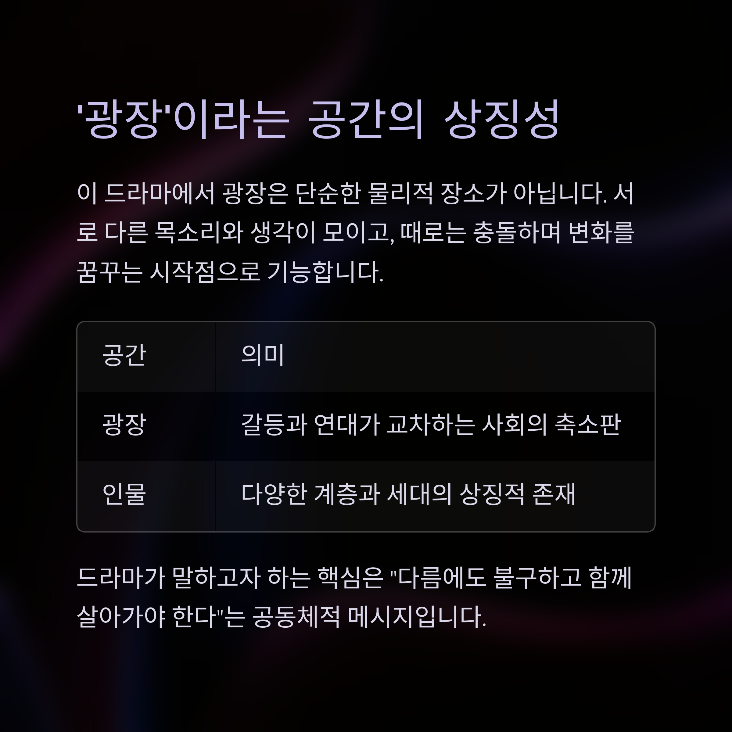 이 드라마에서 광장은 단순한 물리적 장소가 아닙니다.