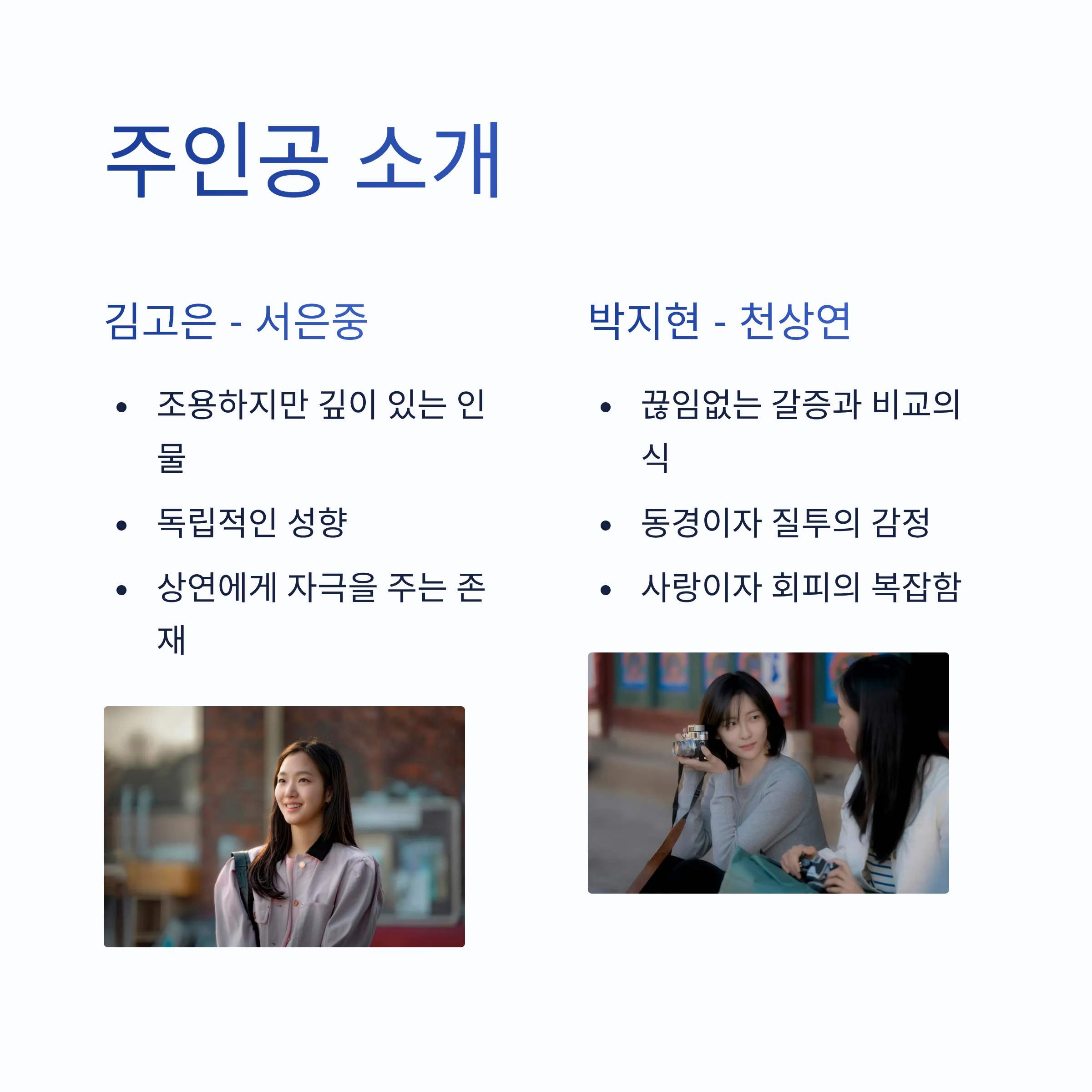 🎭 주인공 소개: 은중과 상연, 거울처럼 닮은 듯 다른 두 사람