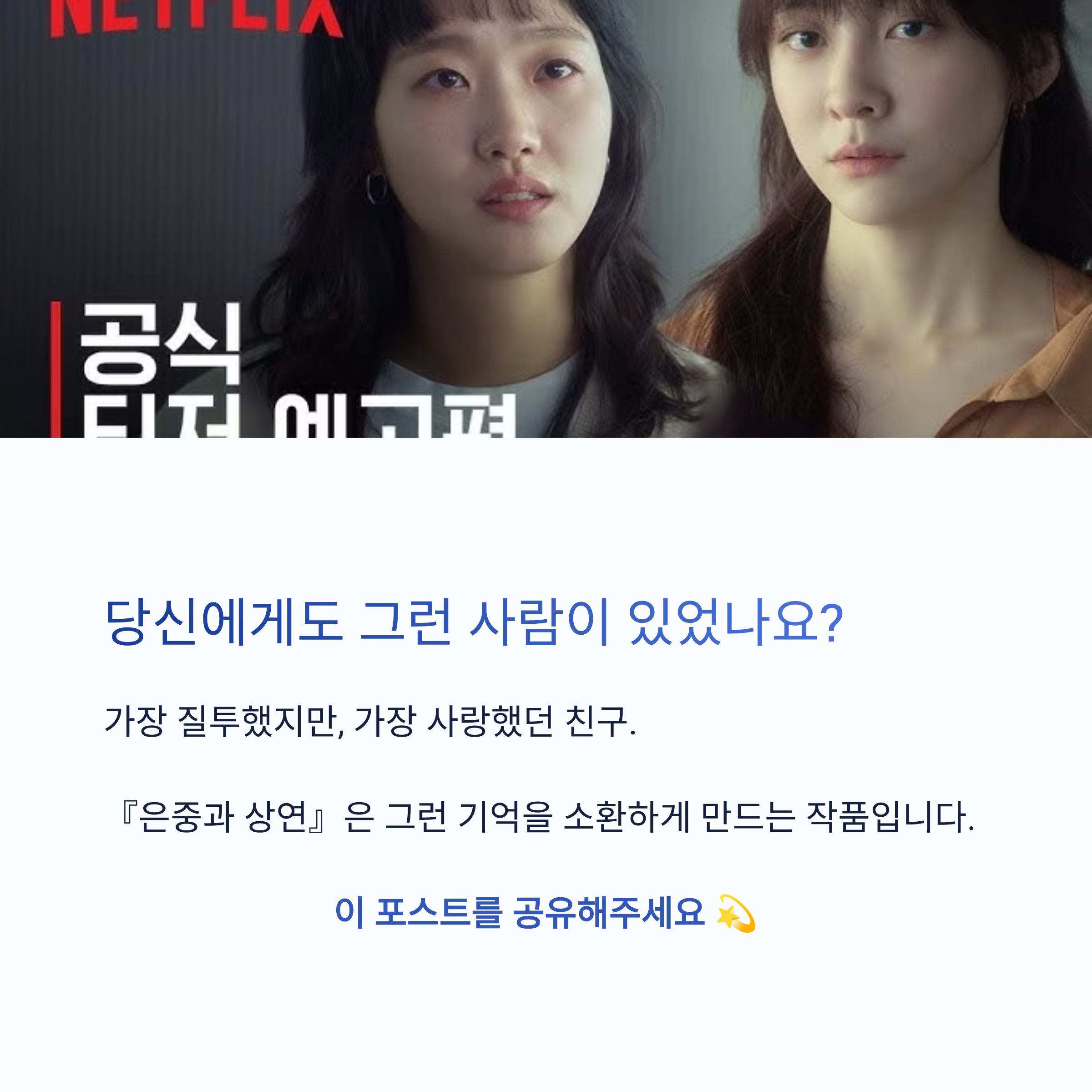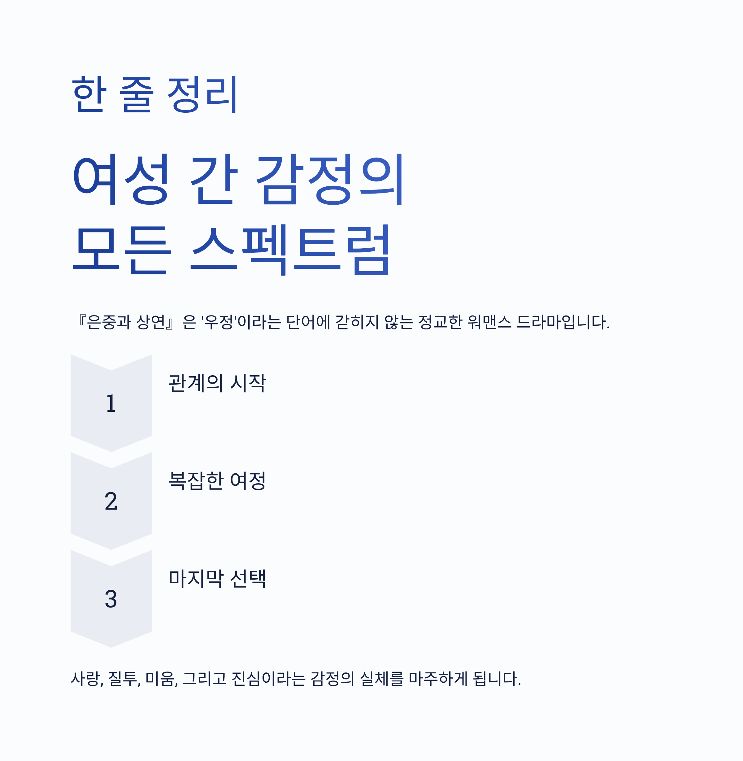 『은중과 상연』은 ‘우정’이라는 단어에 갇히지 않는, ‘여성 간 감정의 모든 스펙트럼’을 보여주는 정교한 워맨스 드라마입니다.