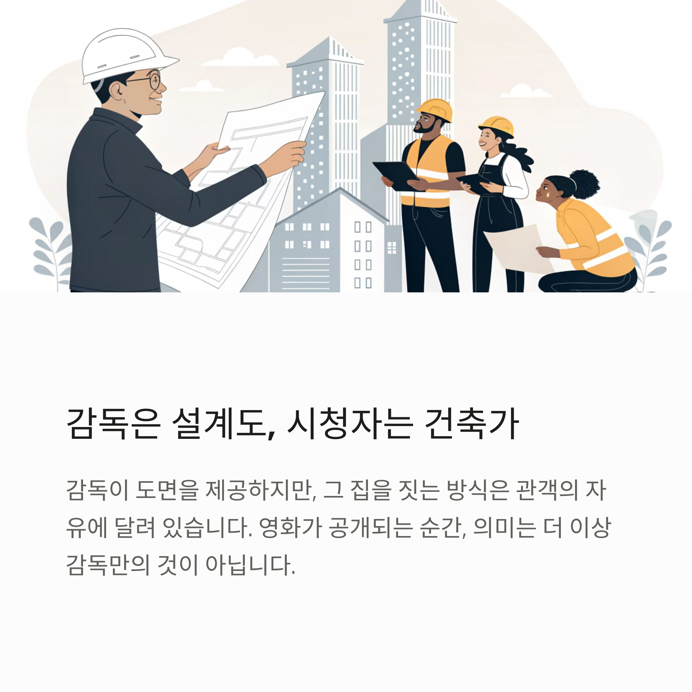 관객이 그 의미를 어떻게 ‘건축’하느냐에 따라 결과물이 달라집니다