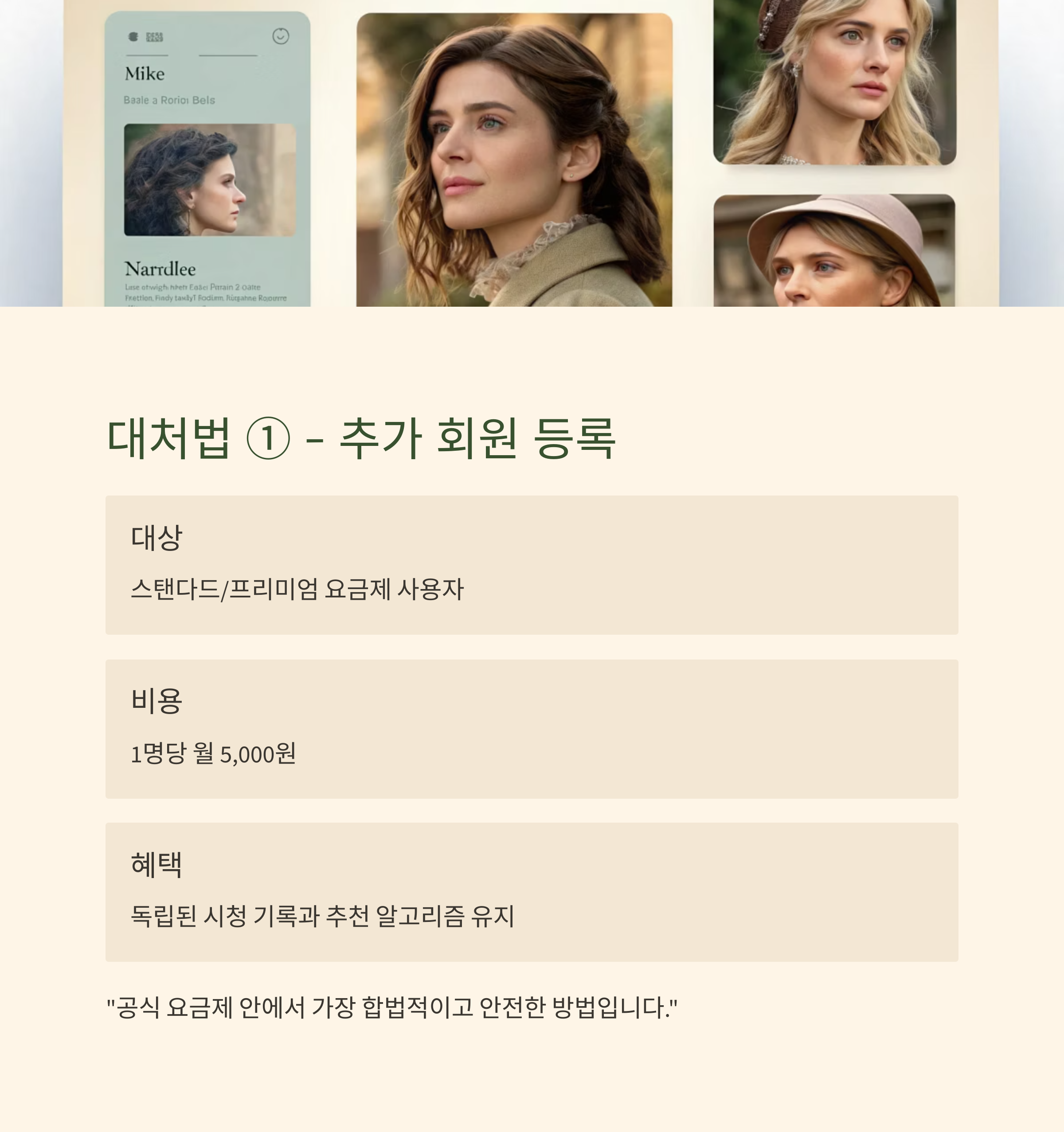 - 혜택: 완전 독립된 시청 기록과 추천 알고리즘 유지