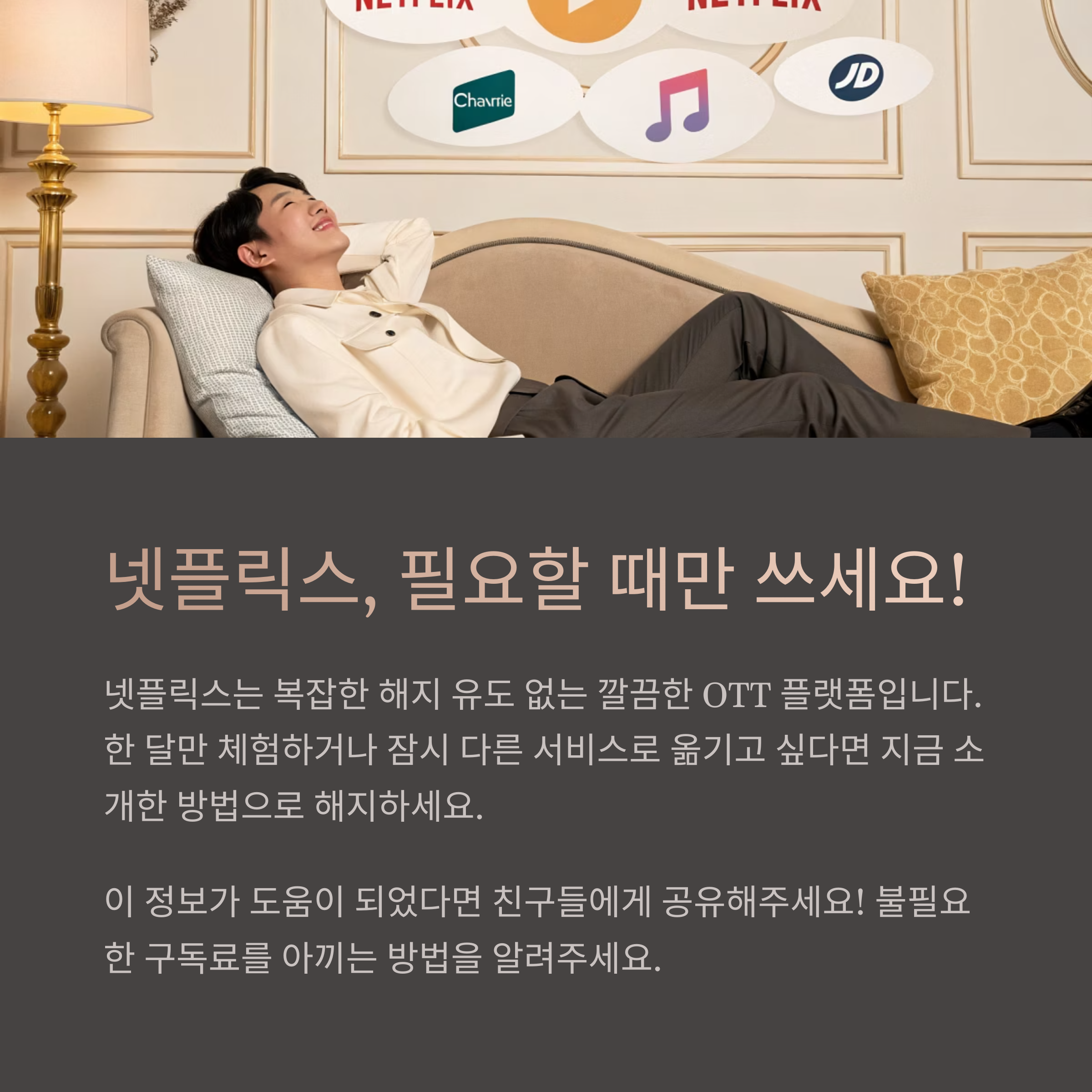 넷플릭스는 복잡한 해지 유도 없는 깔끔한 OTT 플랫폼입니다.