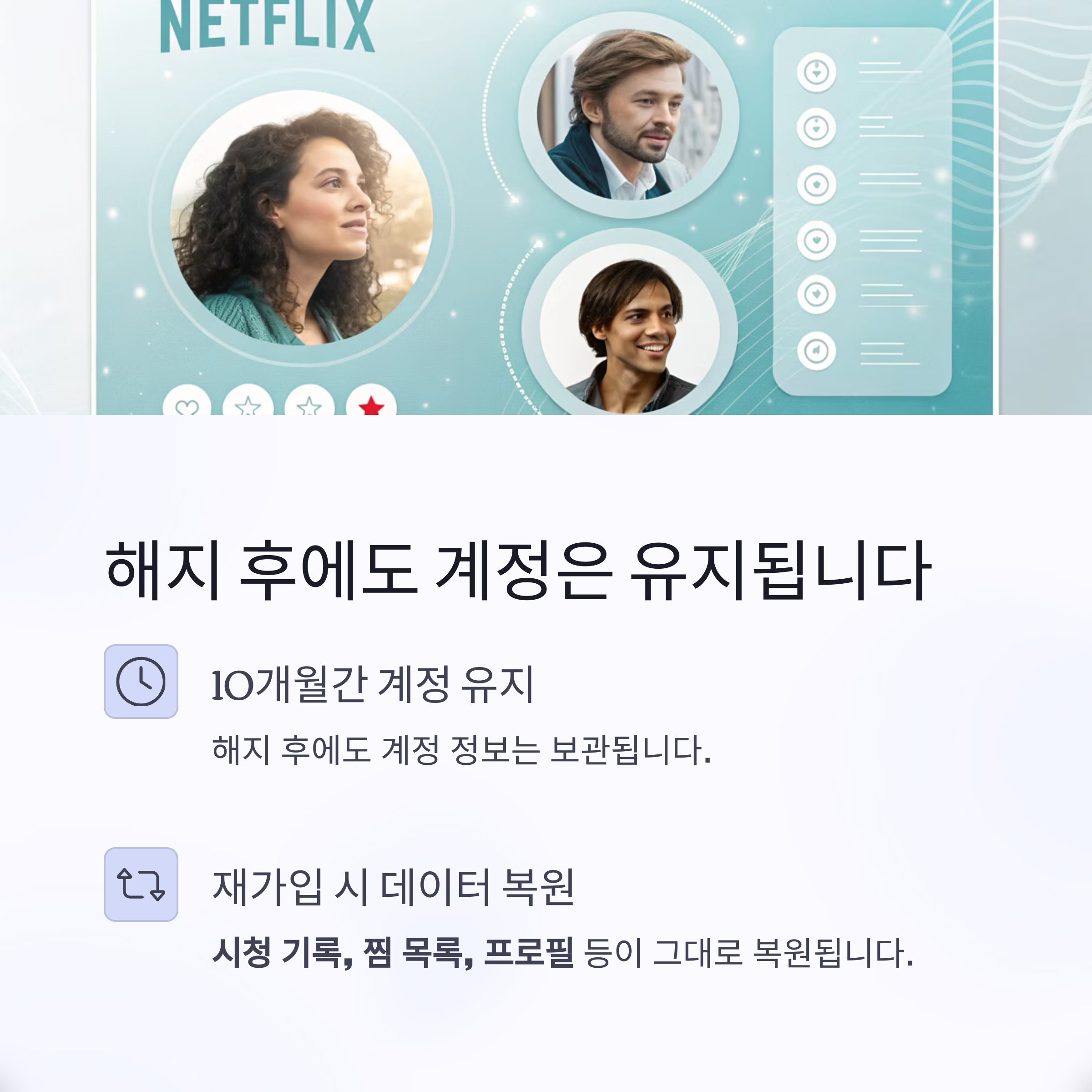 재가입 시에는 이전 시청 기록, 찜 목록, 프로필 등이 복원됩니다.