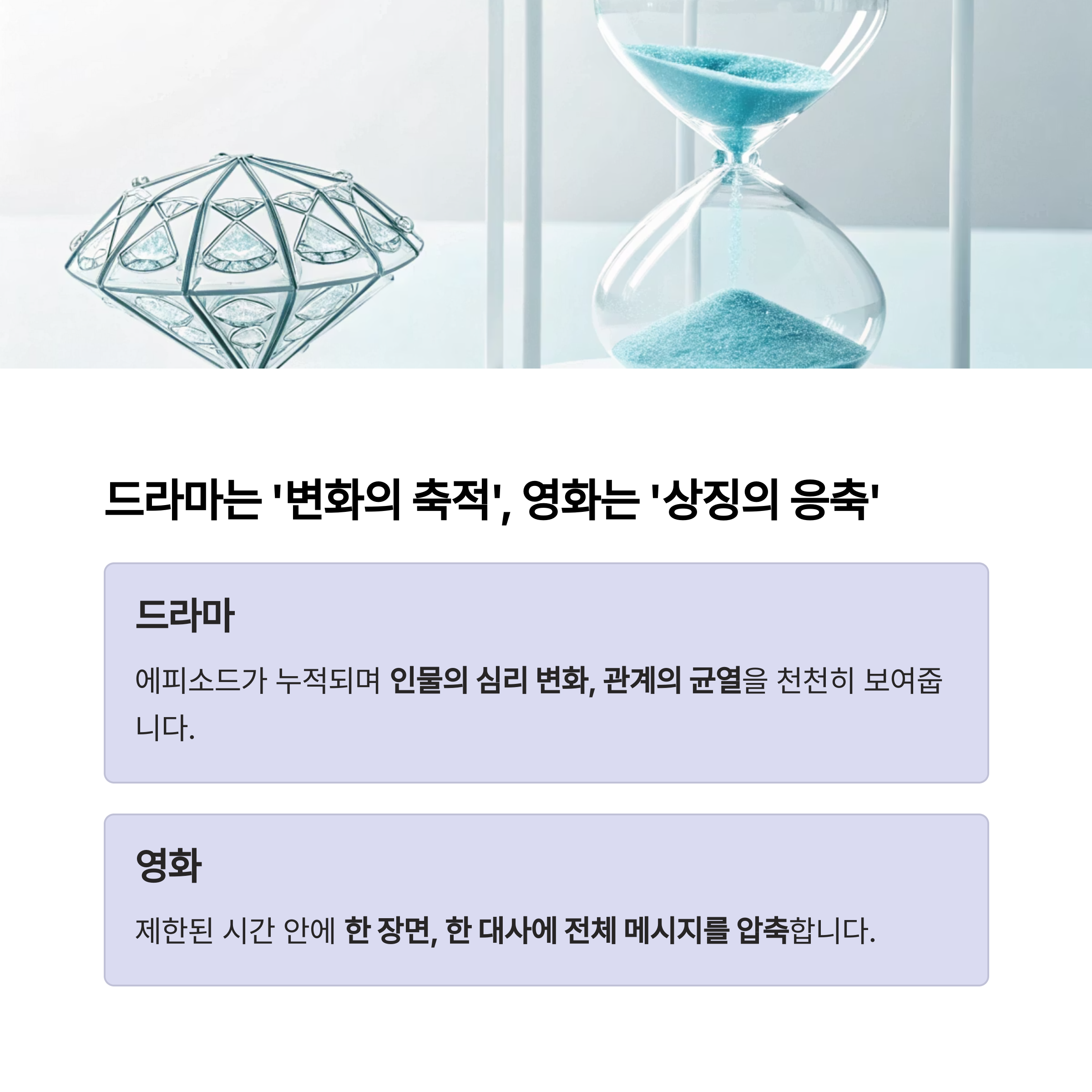 드라마는 '변화의 축적' 중심, 영화는 '상징의 응축' 중심