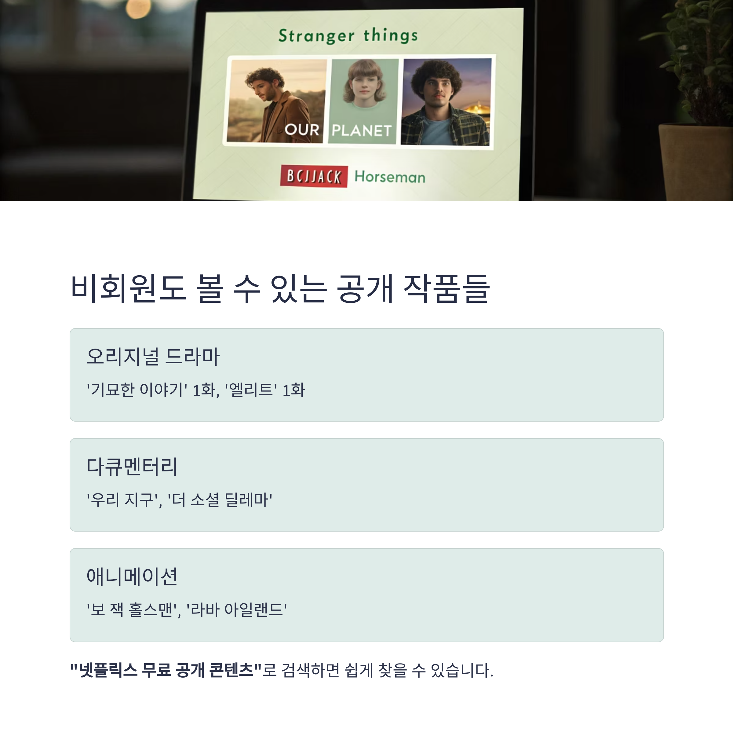 넷플릭스는 로그인 없이 감상 가능한 콘텐츠를