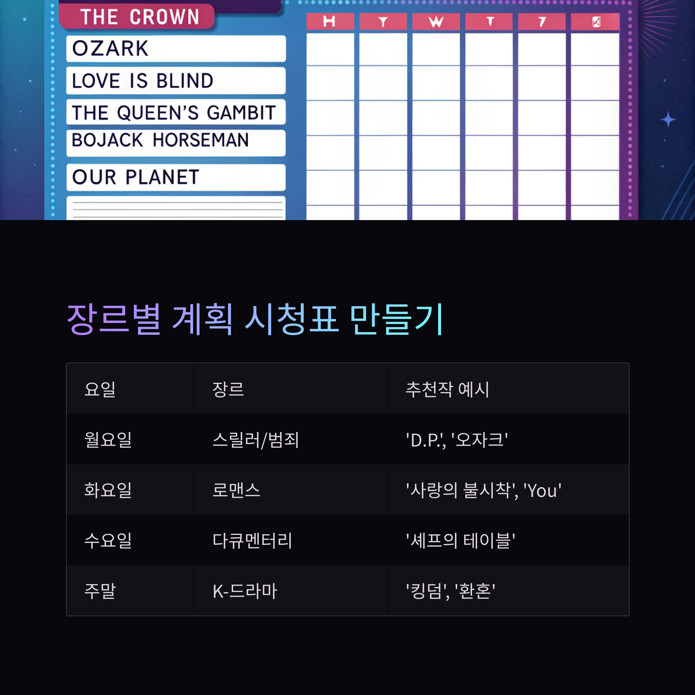 단기간 몰아보기 전략: 장르별 ‘계획 시청표’ 만들기
