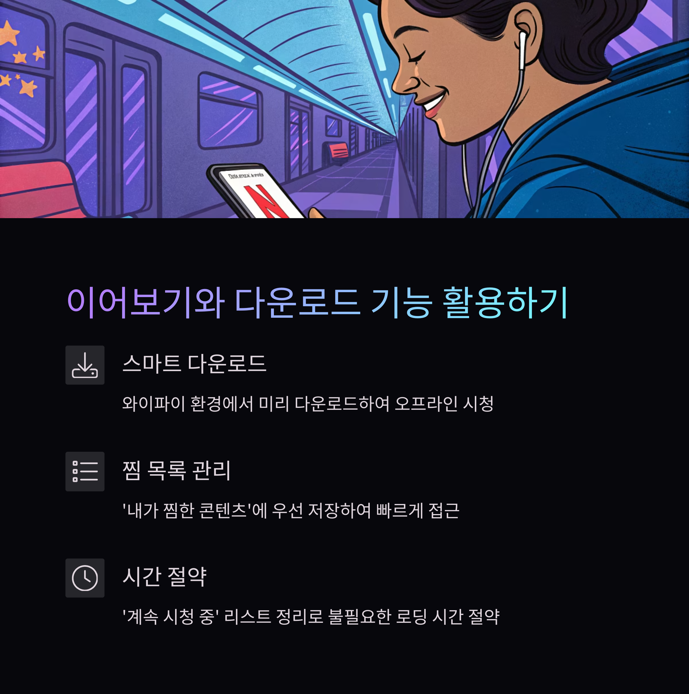 최대 활용 팁: '이어보기 목록'과 '다운로드 기능' 적극 활용하기