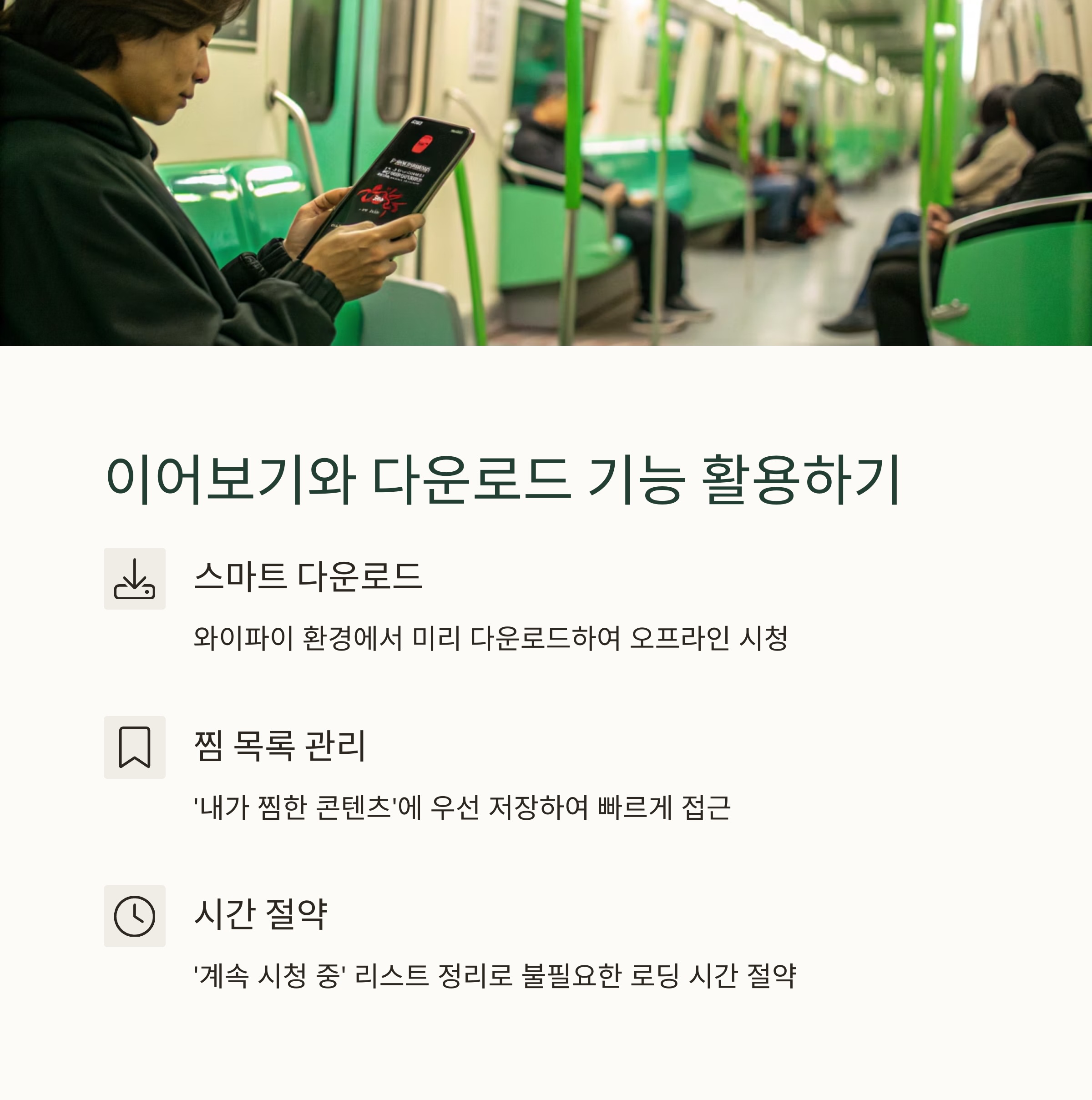 최대 활용 팁: '이어보기 목록'과 '다운로드 기능' 적극 활용하기