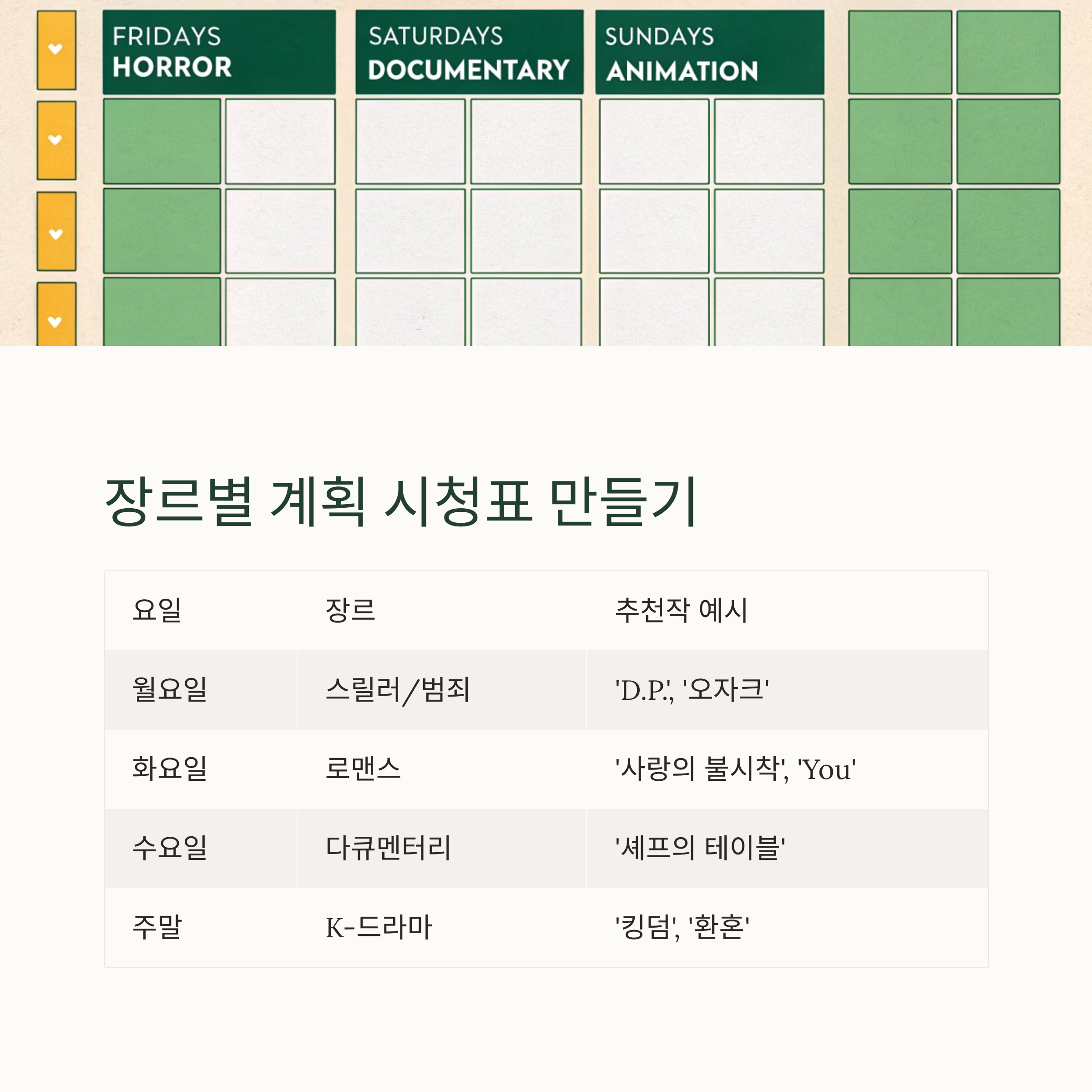 단기간 몰아보기 전략: 장르별 ‘계획 시청표’ 만들기