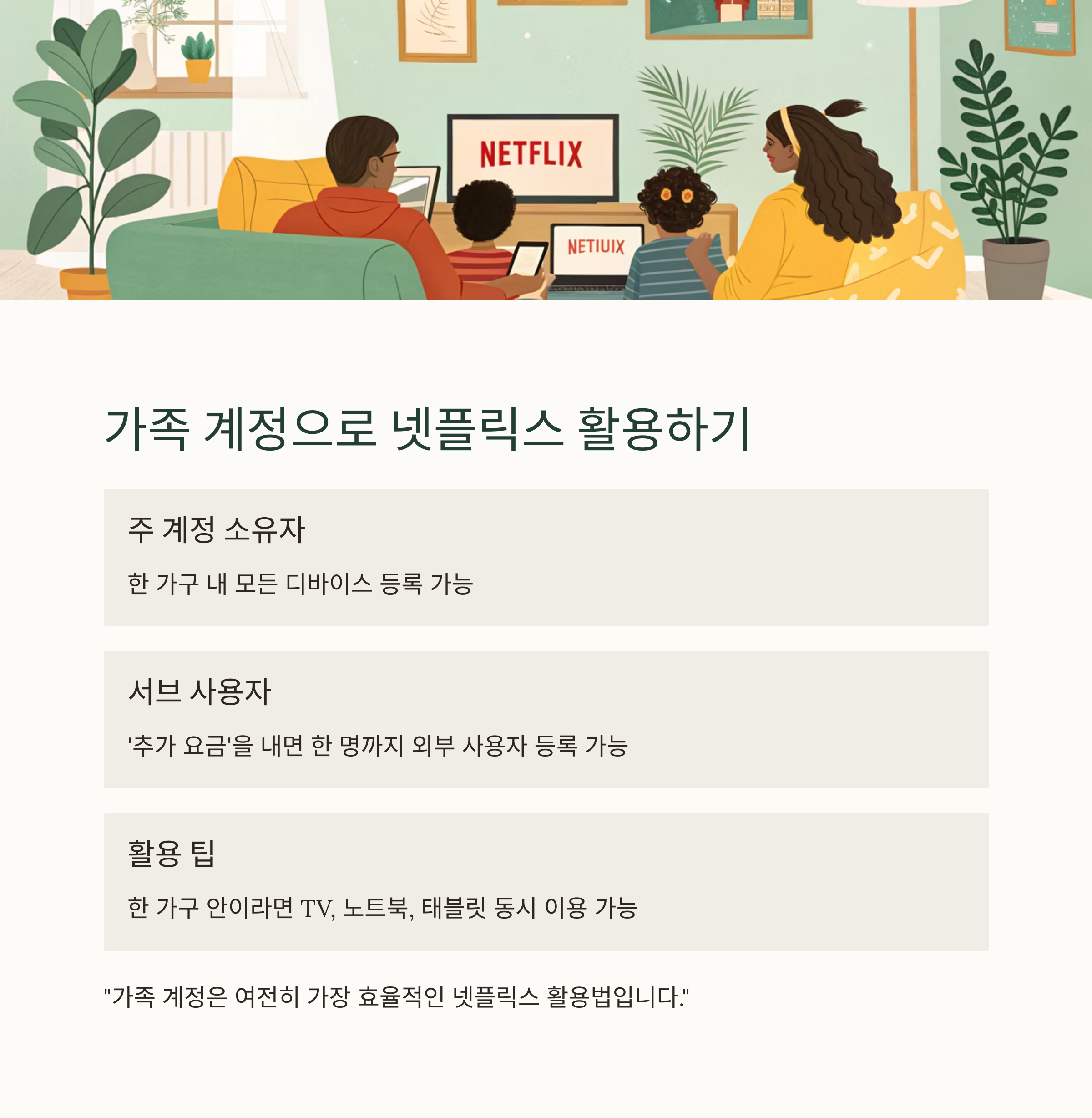 "가족 계정은 여전히 가장 효율적인 넷플릭스 활용법입니다."