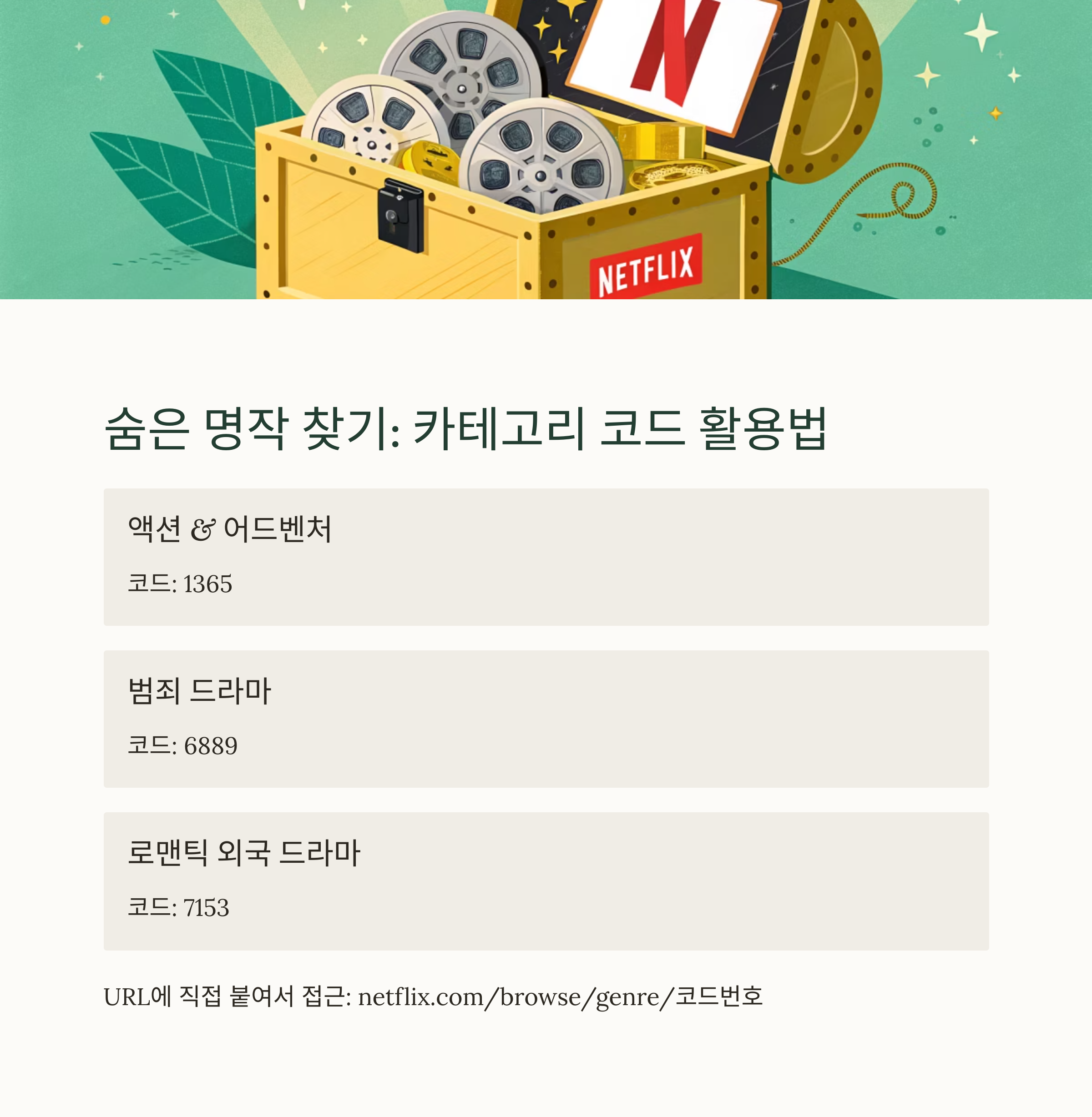 URL에 직접 붙여서 접근 가능: https://www.netflix.com/browse/genre/코드번호