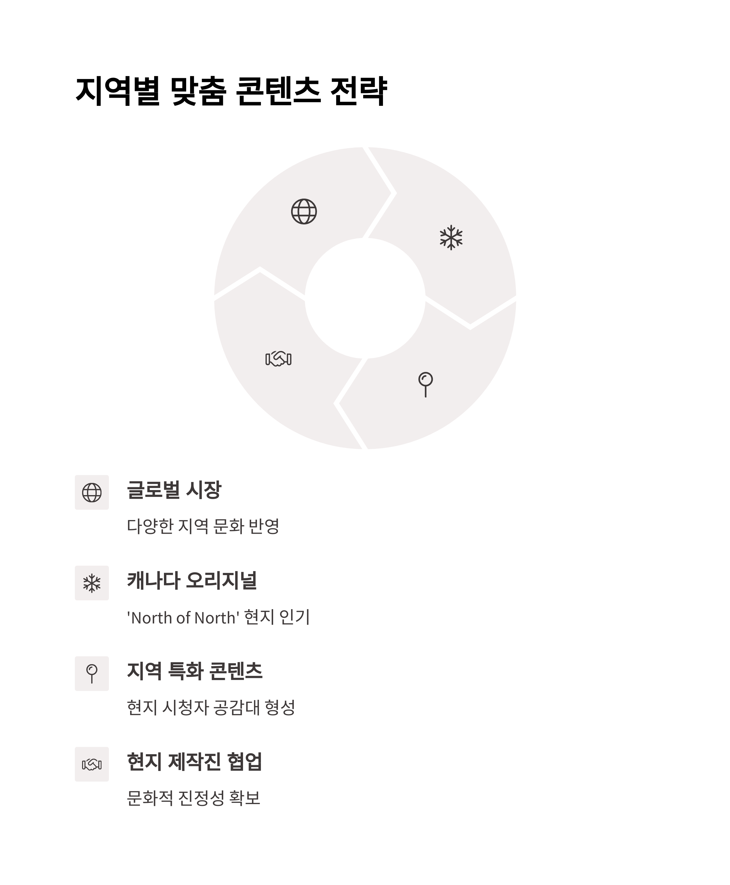 예를 들어, 캐나다 오리지널 시리즈 'North of North'는 북극 지역의 이야기를 담아내며, 현지 시청자들의 공감을 얻고 있습니다. (Adolescence Continues Ascent, Now at No. 3 on Most Popular TV List)