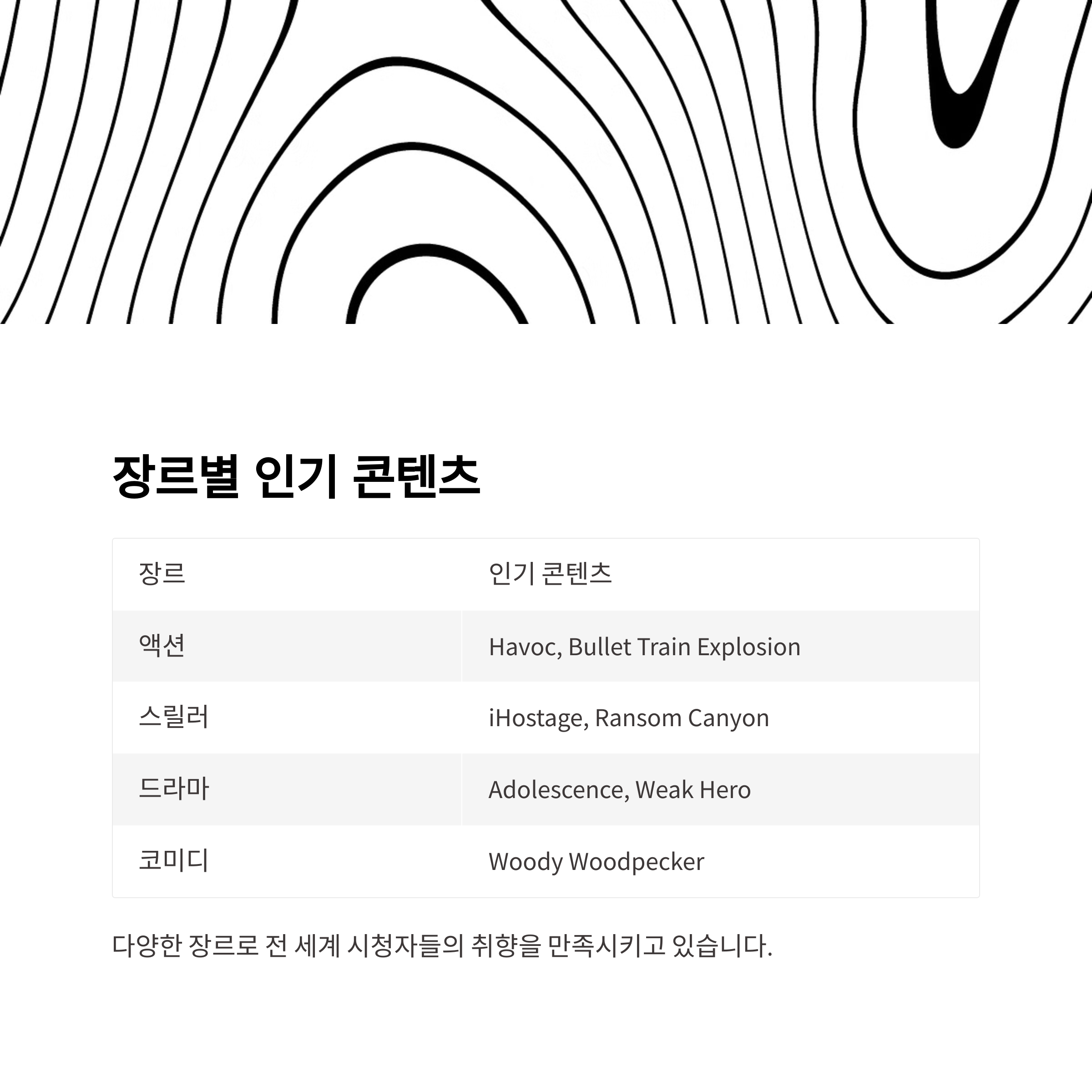 넷플릭스는 다양한 장르의 콘텐츠를 제공하여, 다양한 시청자들의 취향을 만족시키고 있습니다.