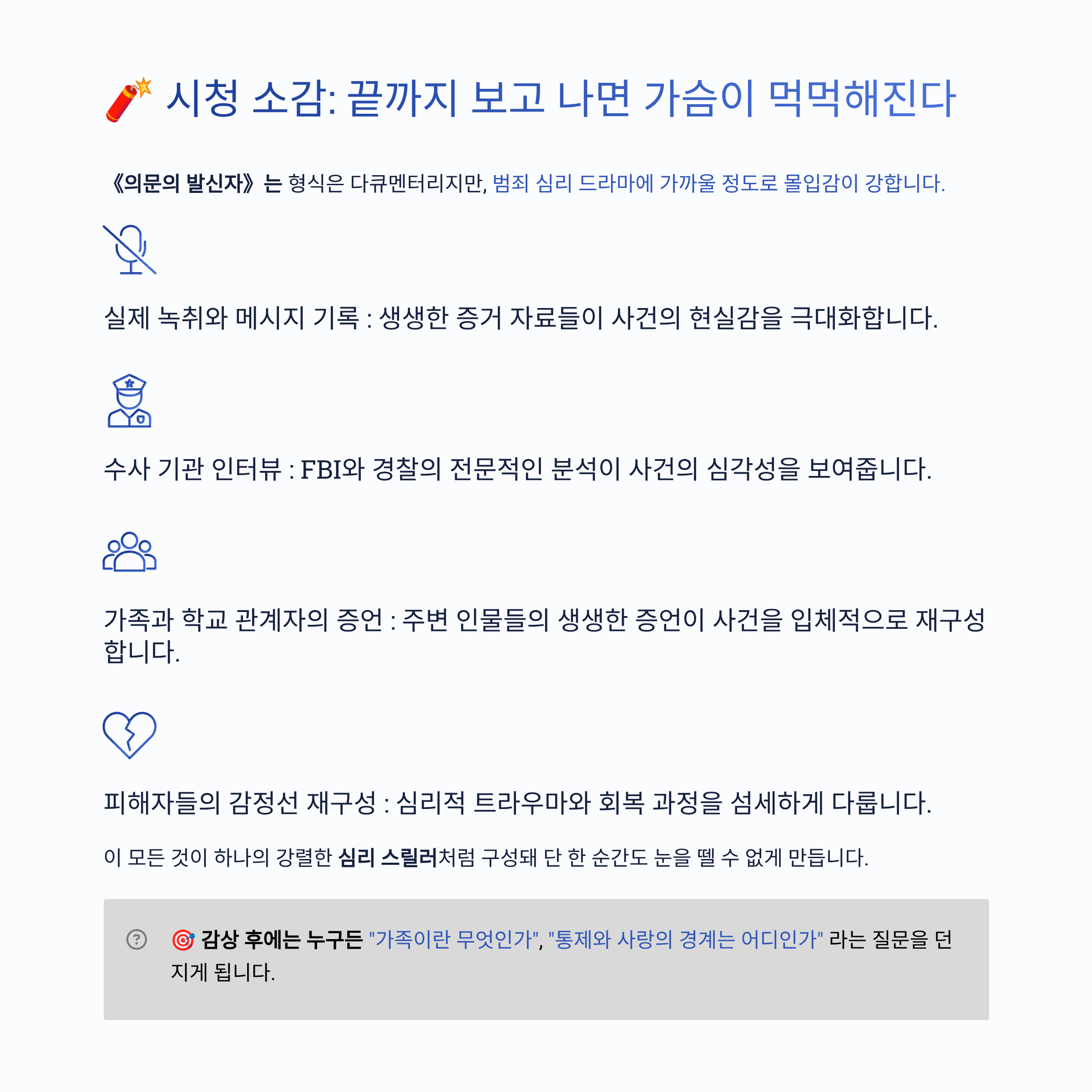 《의문의 발신자》는 단순한 범죄 재구성물이 아닙니다.