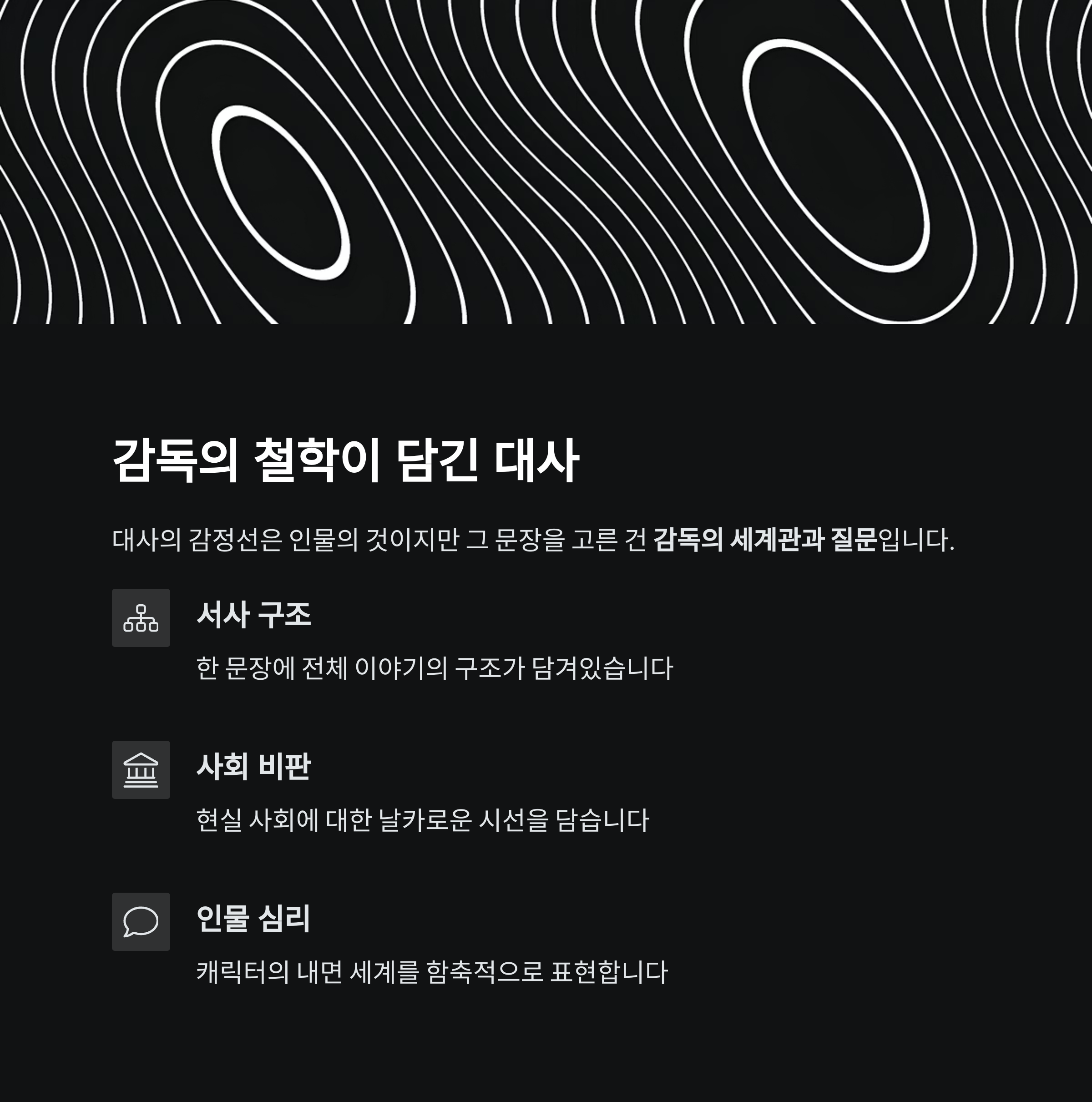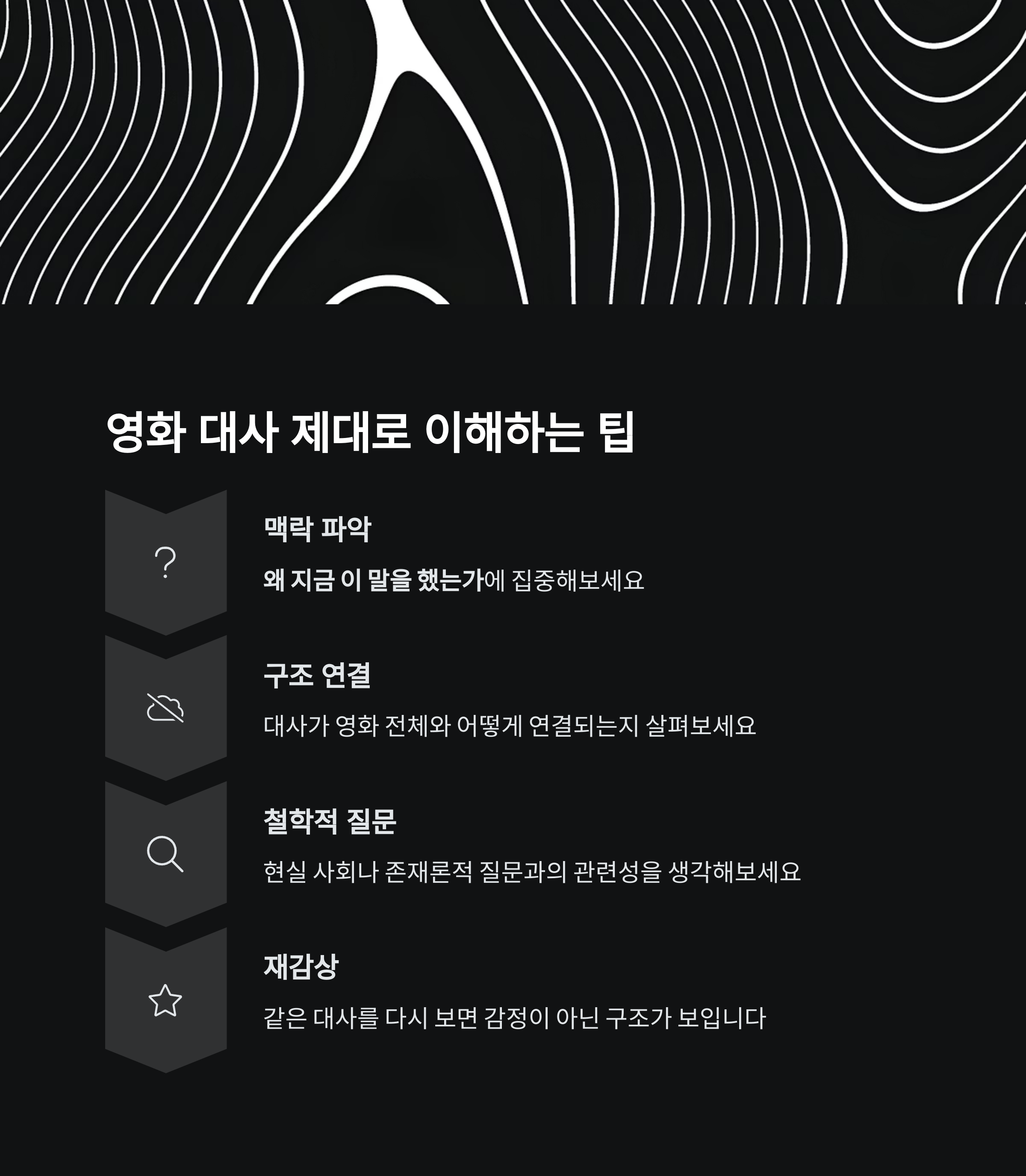 - 이 대사가 영화 전체와 어떻게 연결되는지 구조를 파악해보세요