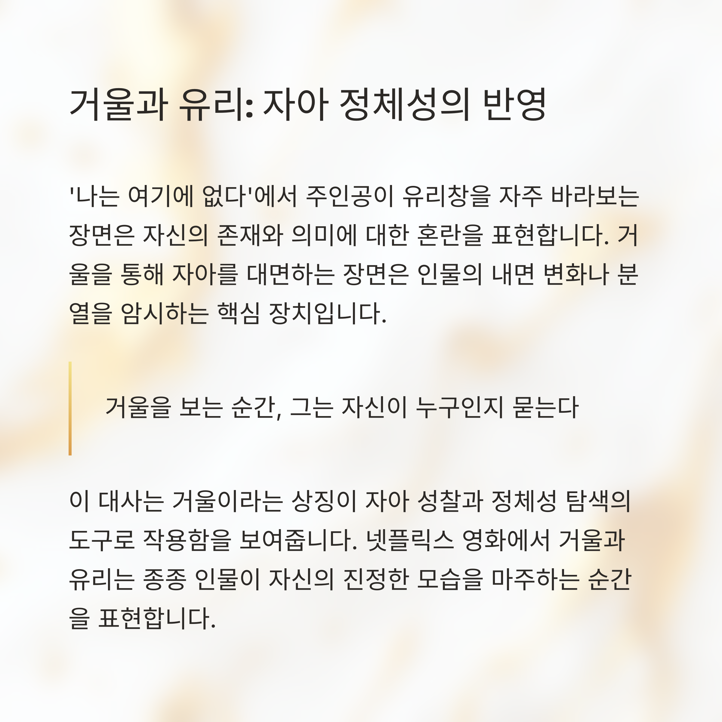 단순한 장면처럼 보이지만, 사실은 영화 전체의 의미를 담은 상징적 장면이나 소품들이 넷플릭스 영화에 자주 등장합니다