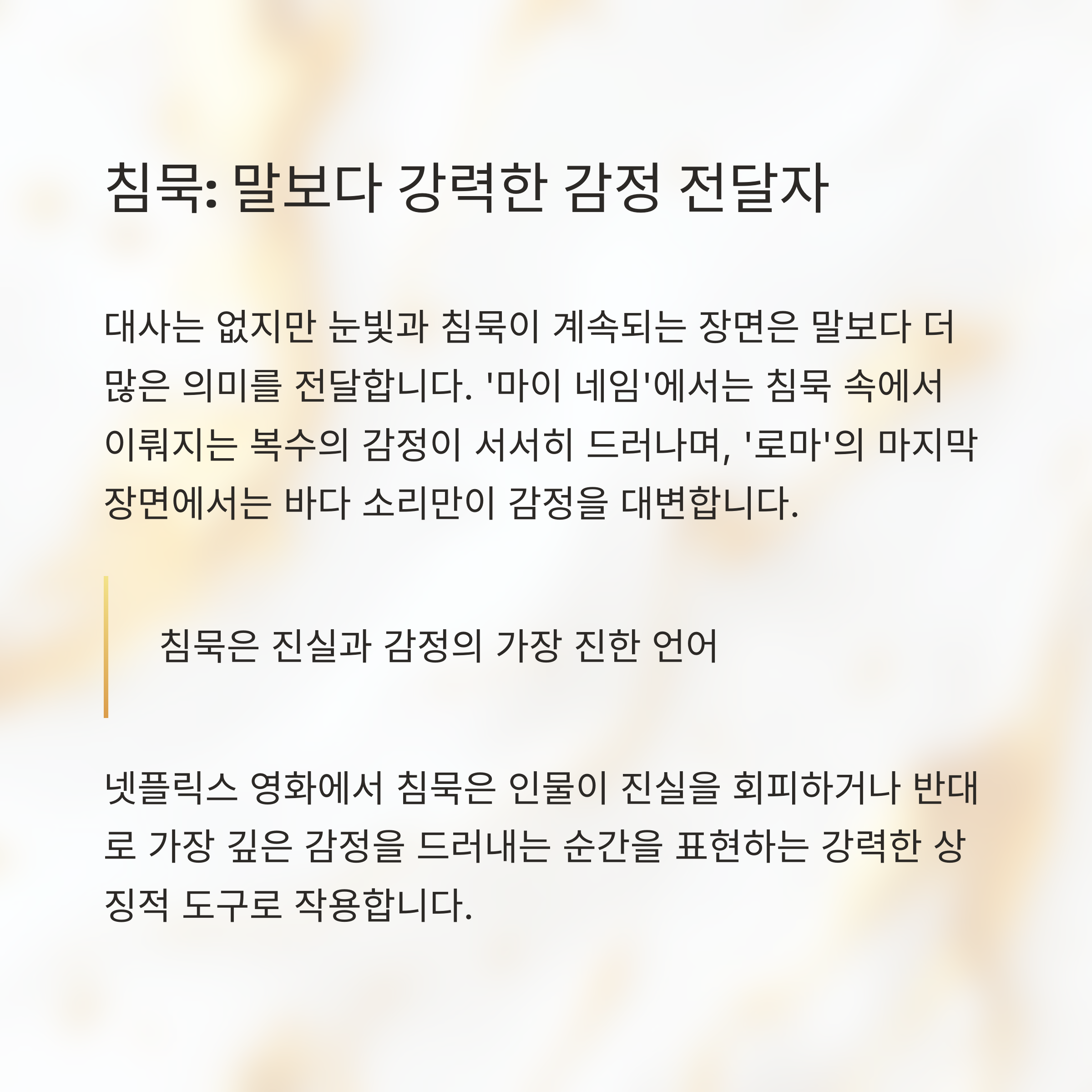 이처럼 침묵은 진실과 감정의 가장 진한 언어로 작용합니다