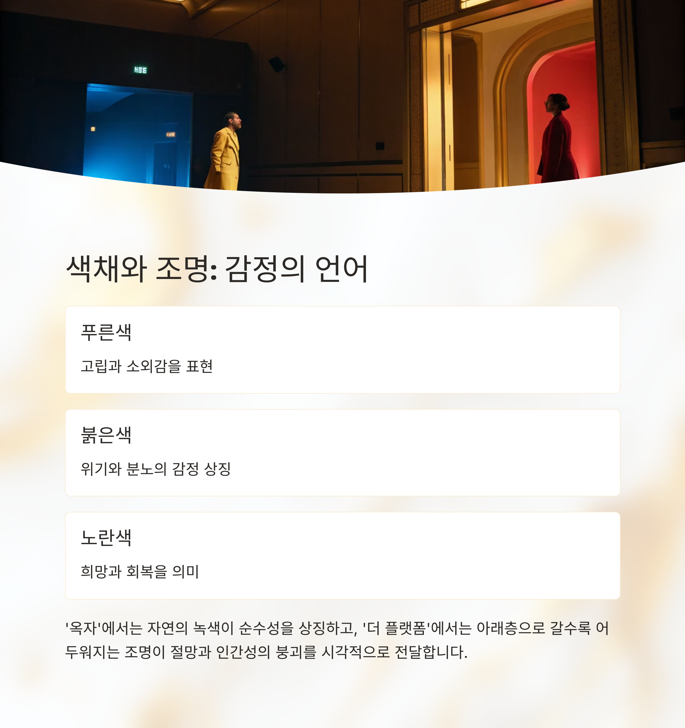 ‘더 플랫폼’의 수직 구조는 계급 사회 그 자체를 상징합니다
