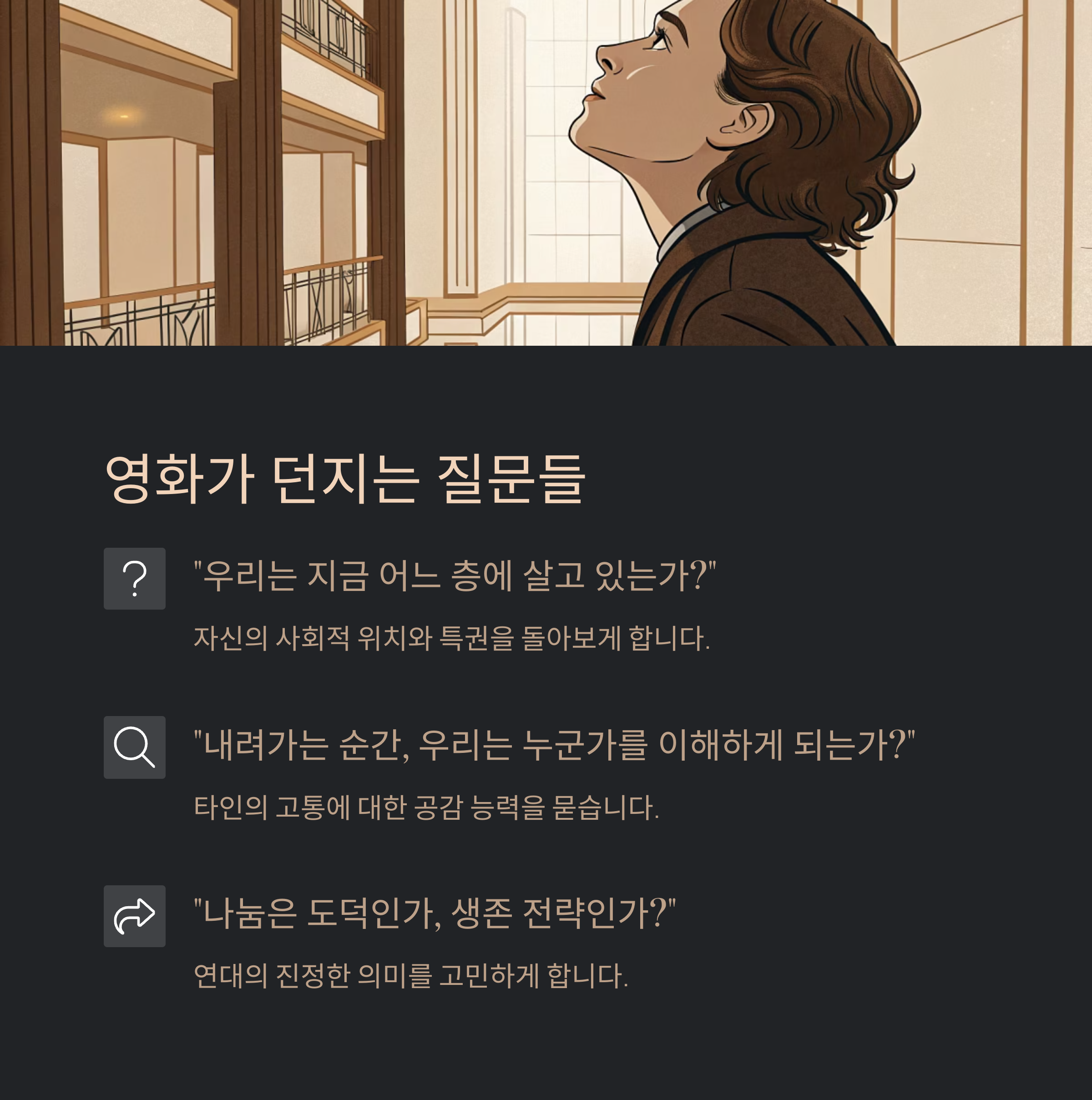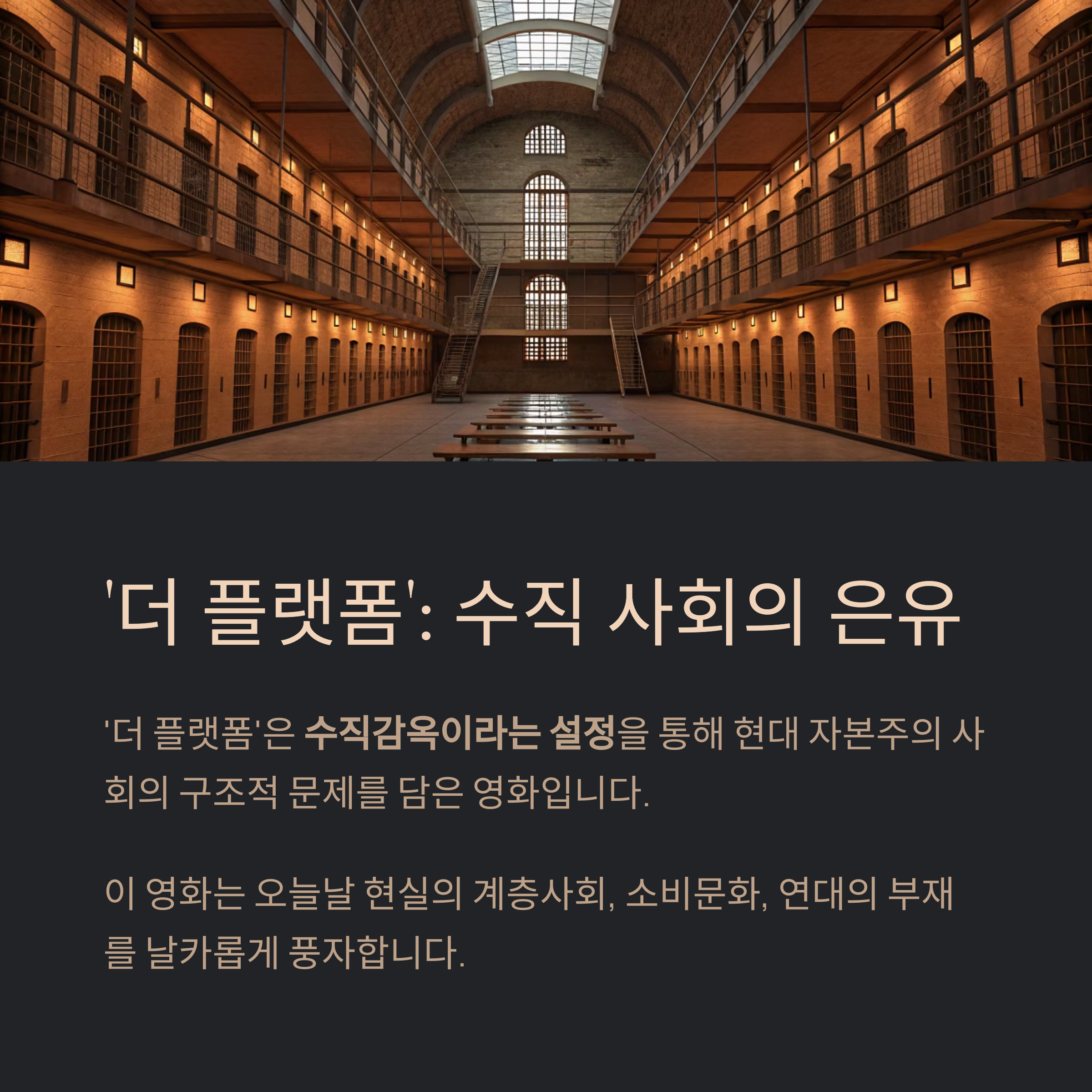 현대 자본주의 사회의 구조적 문제를 담은 수직적 영화입니다