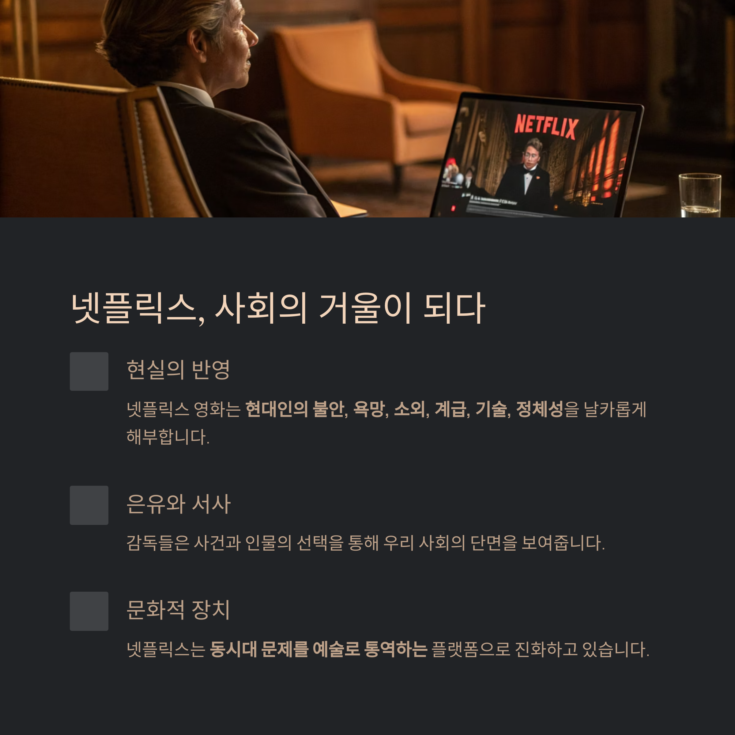 넷플릭스는 사회 비판의 새로운 거울이 되었다