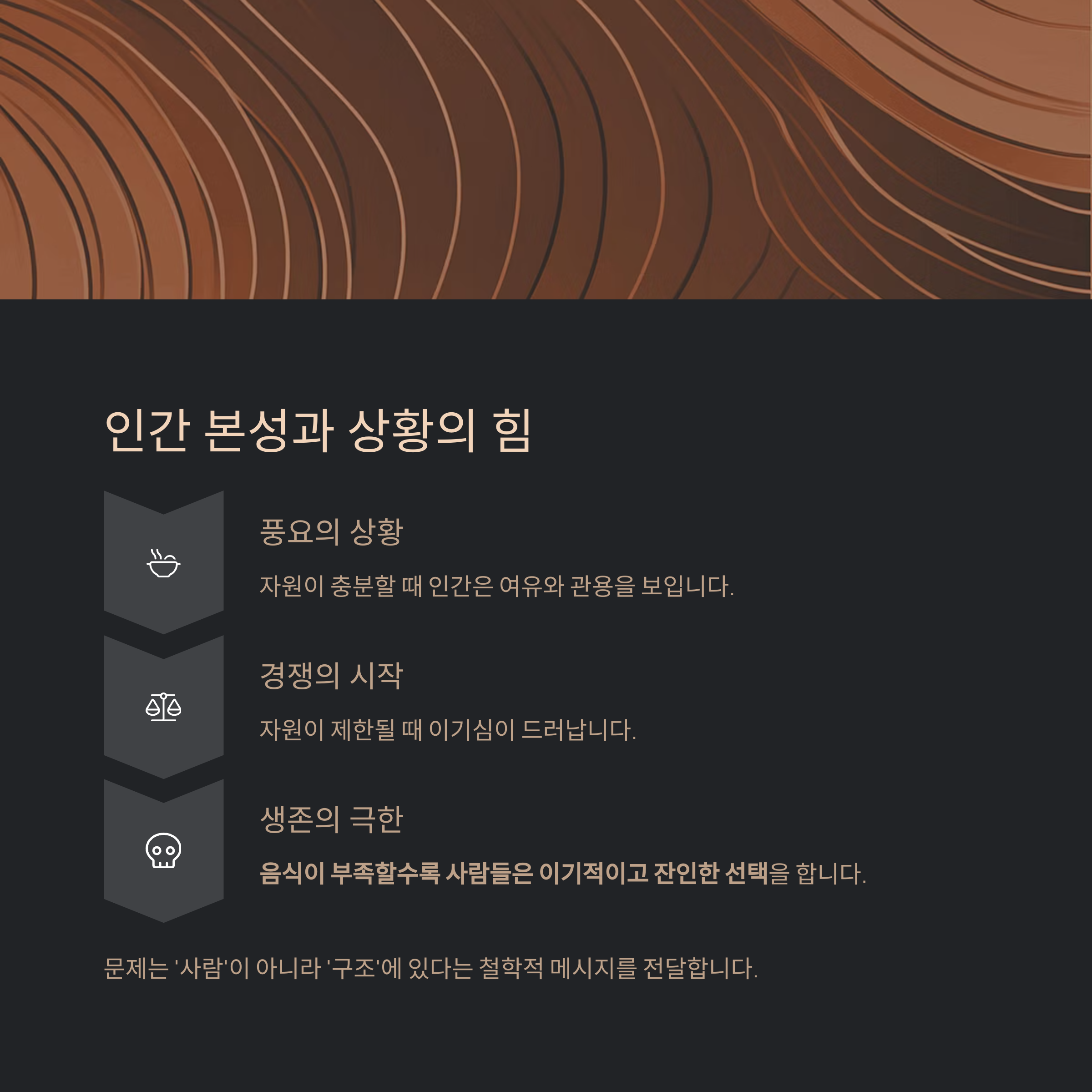 음식이 부족할수록 사람들은 이기적이고 잔인한 선택을 하게 됩니다