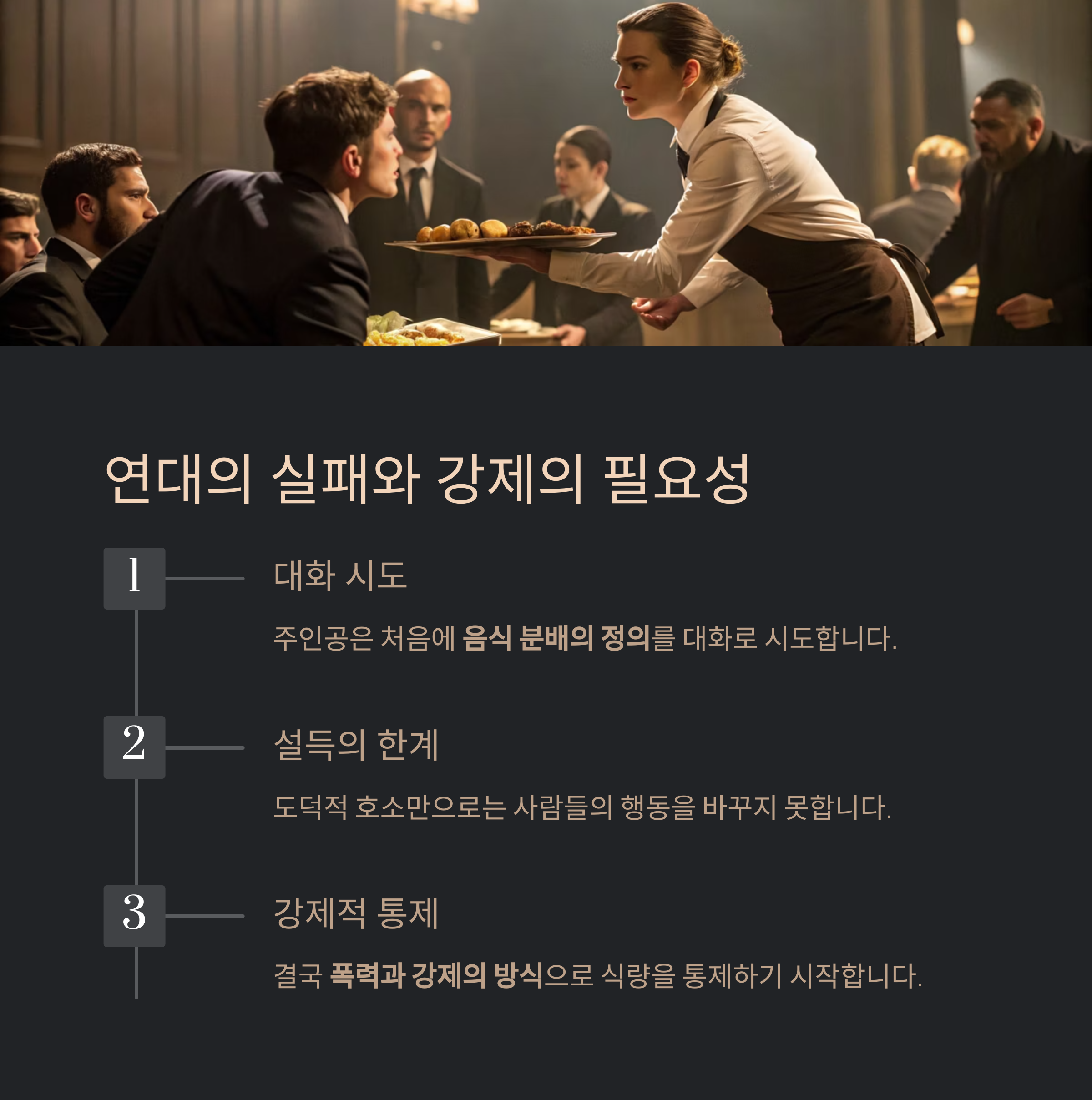 | 무력한 연대 | 대화 시도의 반복 실패 | 윤리만으로는 시스템을 바꾸지 못한다 |