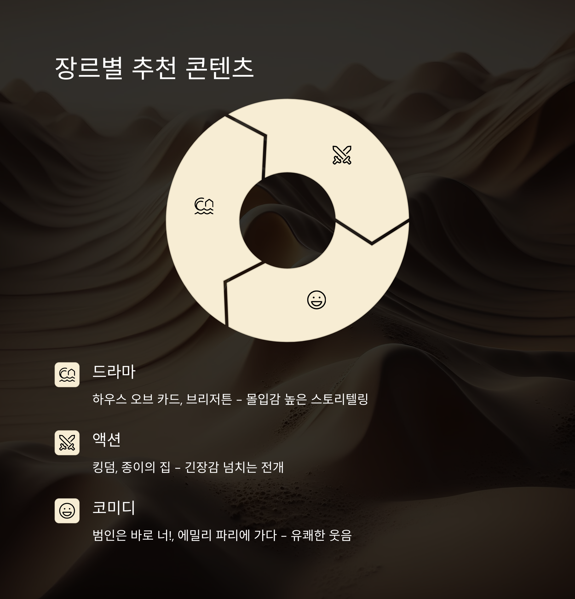 장르별 추천 넷플릭스 오리지널 - 드라마, 액션, 코미디