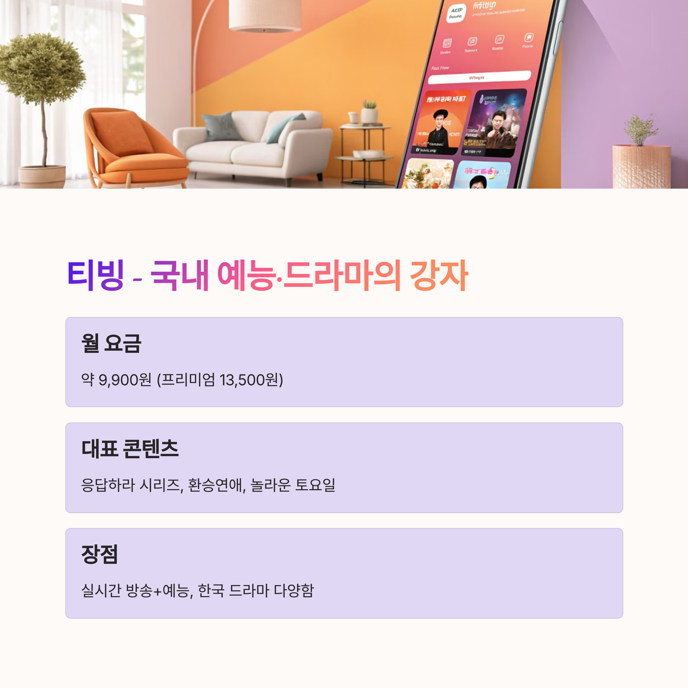 | 티빙 | 한국 예능/드라마 중심 이용자 | 예능/실시간 방송 강점 |