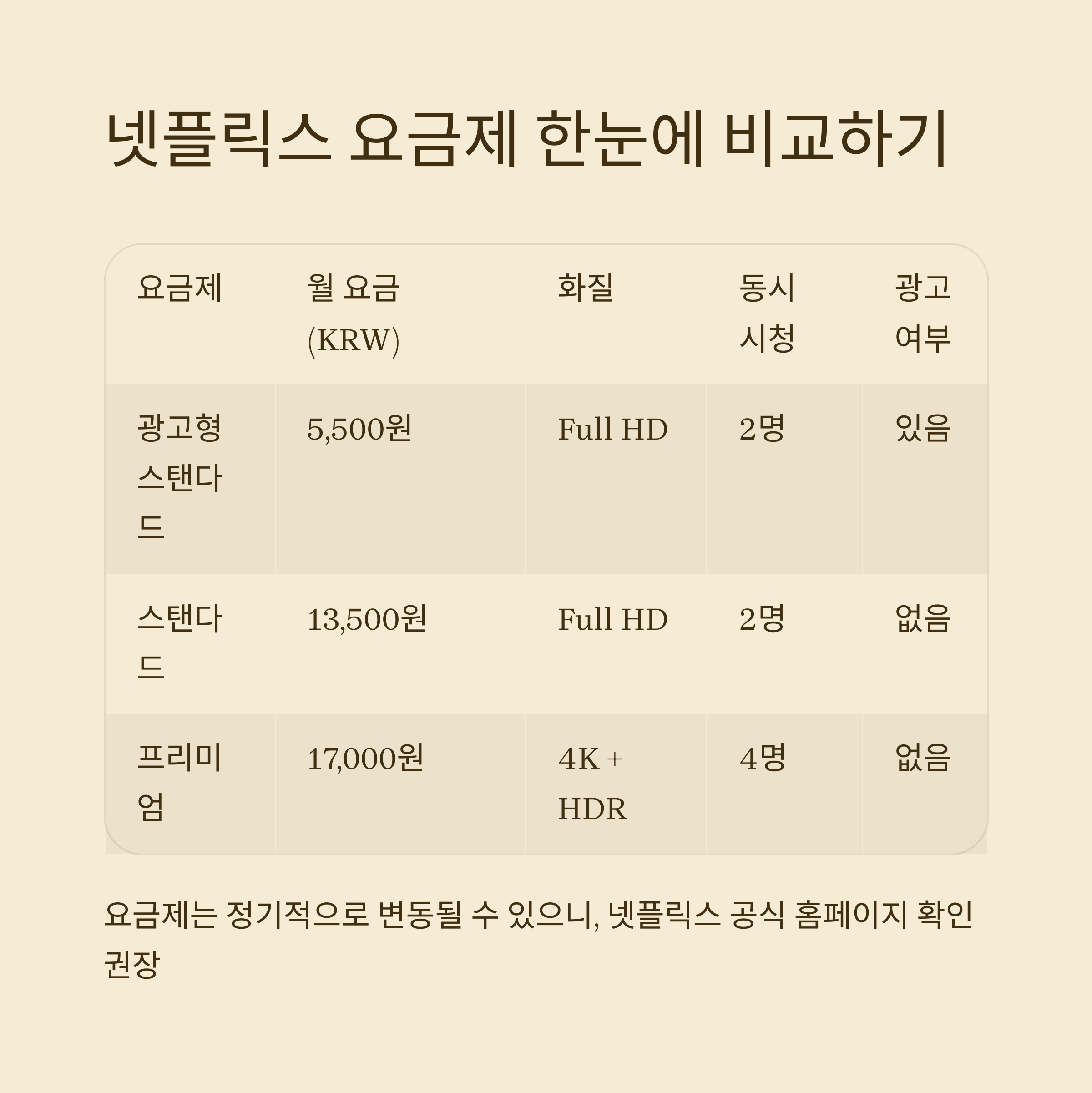 요금제는 정기적으로 변동될 수 있으니, 넷플릭스 공식 홈페이지 확인 권장