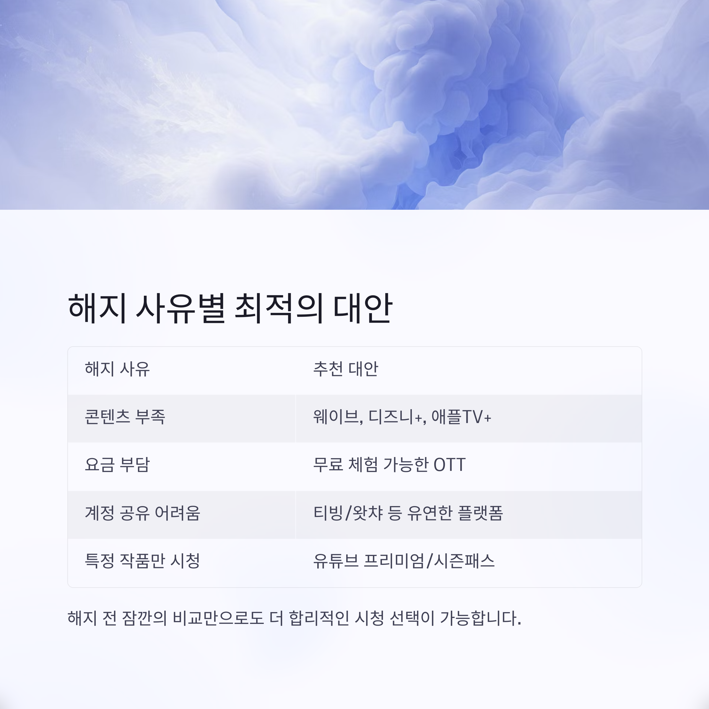 해지 전 잠깐의 비교만으로도 더 합리적인 시청 선택이 가능합니다.