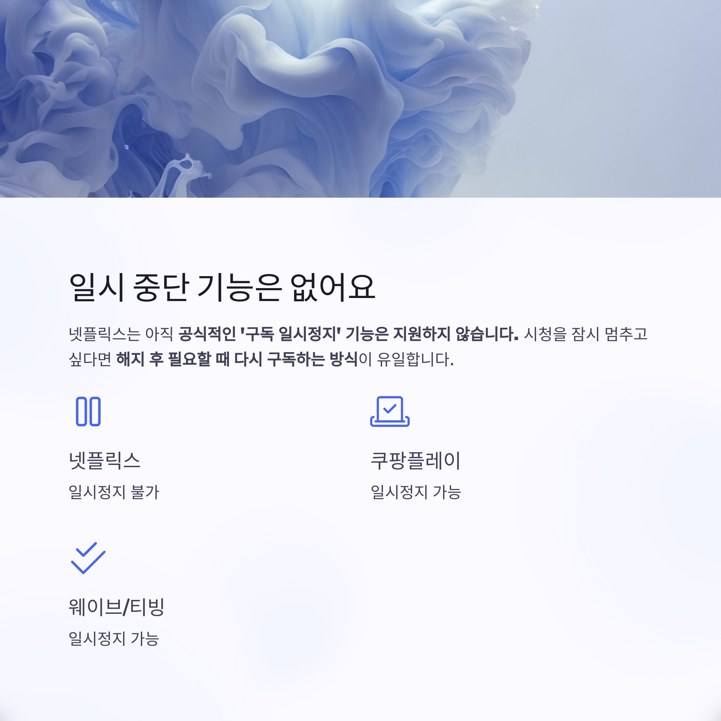 넷플릭스는 아직 공식적인 '구독 일시정지' 기능은 지원하지 않습니다.