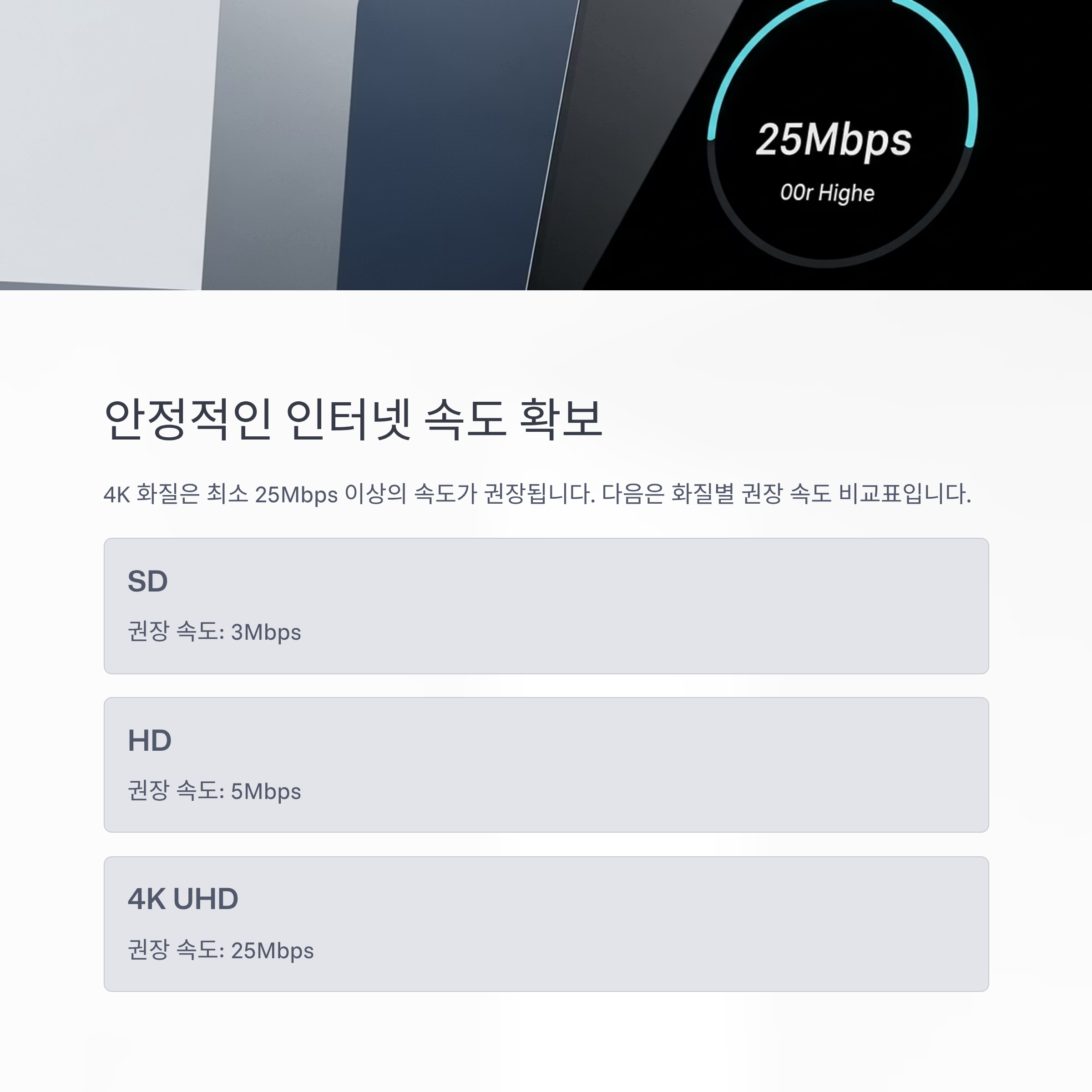 4K 화질은 최소 25Mbps 이상의 속도가 권장됩니다.