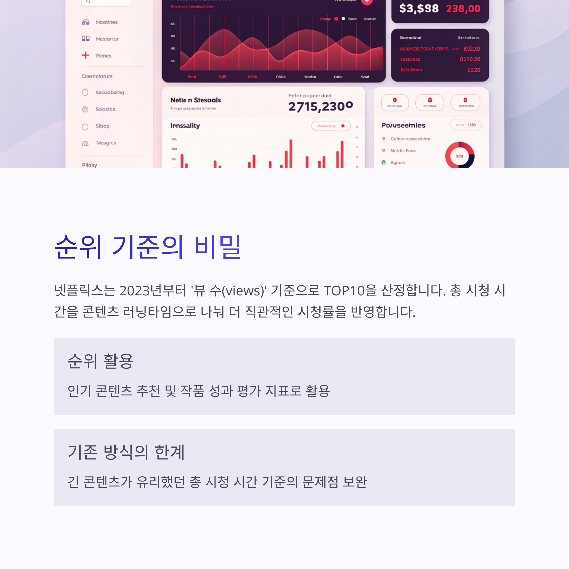 이러한 순위는 시청자들에게 인기 있는 콘텐츠를 추천하는 데 활용되며, 제작사와 배우들에게는 작품의 성과를 평가하는 지표로 사용됩니다.