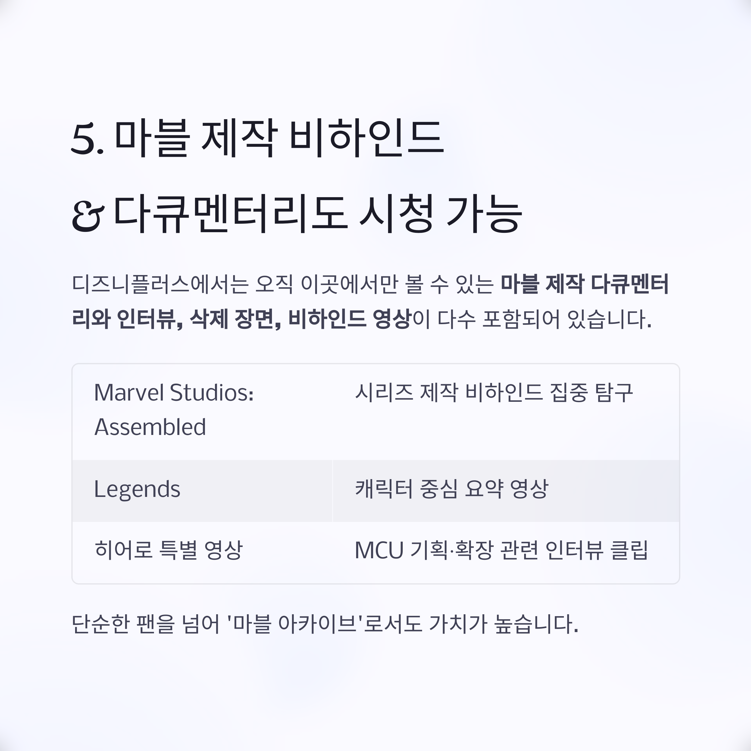 5. 마블 제작 비하인드 & 다큐멘터리도 시청 가능