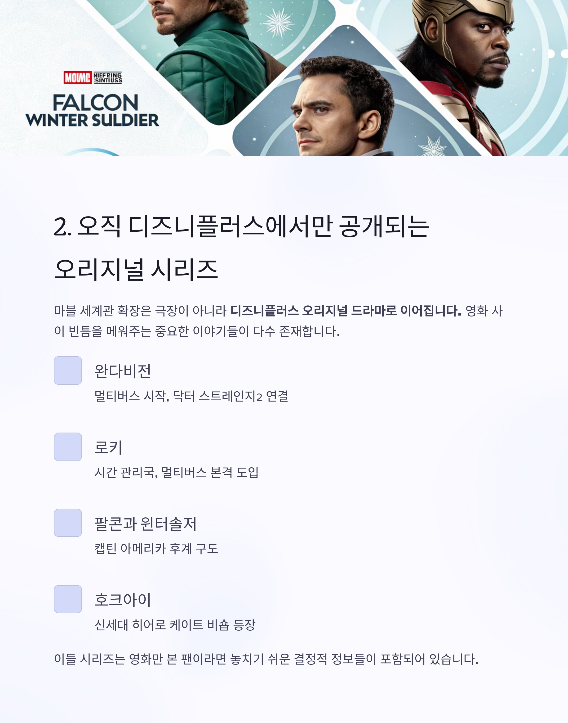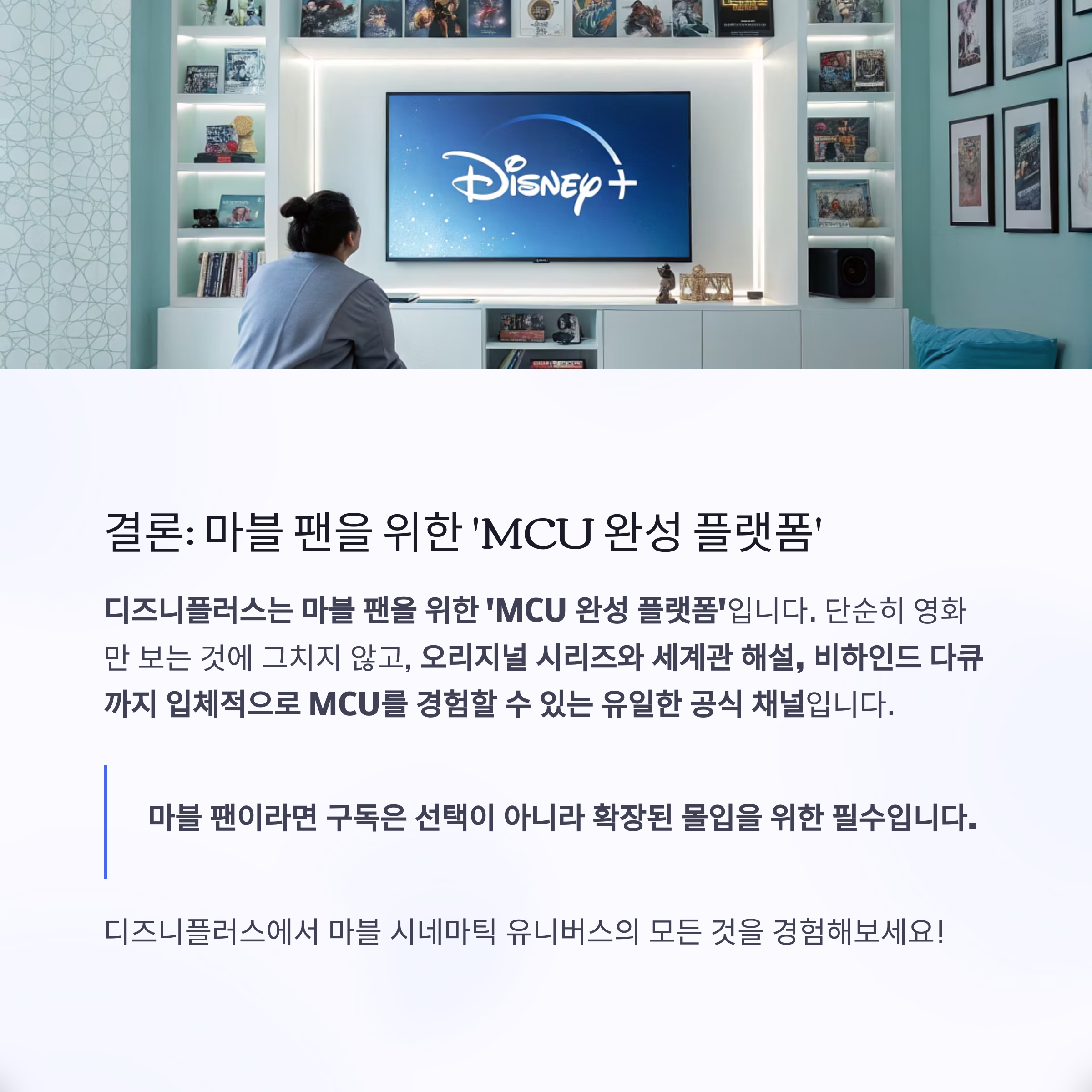 디즈니플러스는 마블 팬을 위한 ‘MCU 완성 플랫폼’입니다.