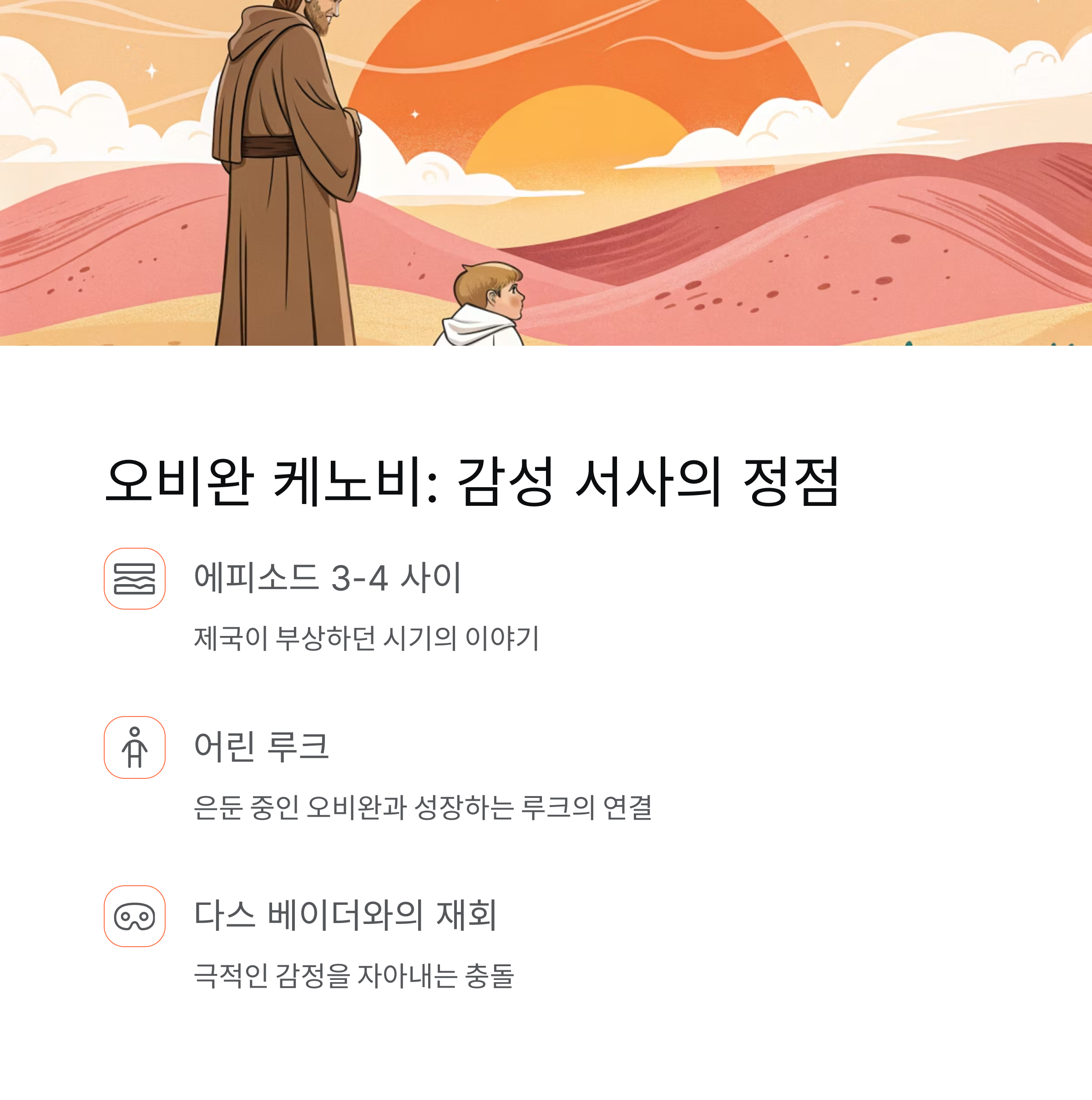| 오비완 케노비 | 드라마 | 오비완, 베이더 | 중 | 감정 서사 강화 |