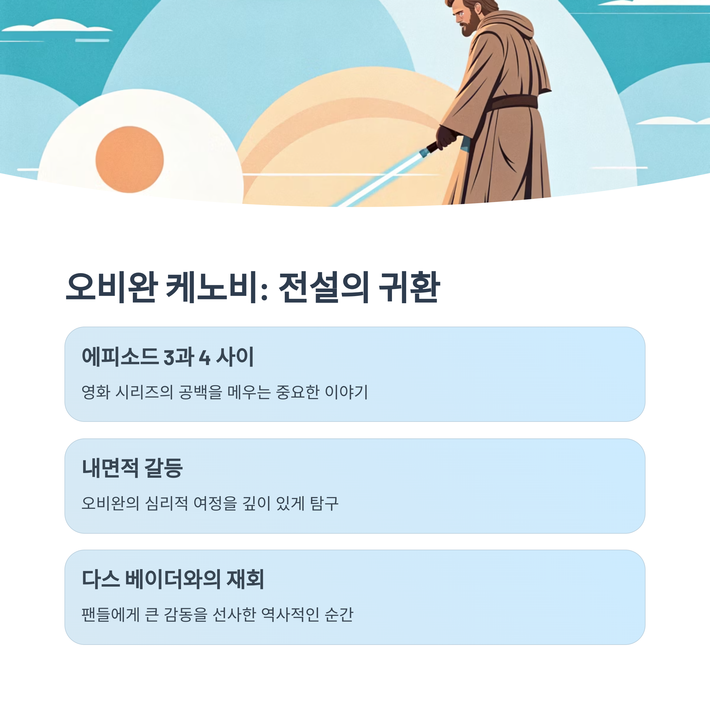 "오비완 케노비"는 에피소드 3과 4 사이의 공백을 메우는 시리즈로, 오비완의 내면적인 갈등과 다스 베이더와의 재회를 중심으로 전개됩니다. 이 시리즈는 기존 캐릭터들의 깊이를 더하며, 팬들에게 큰 감동을 선사했습니다.
