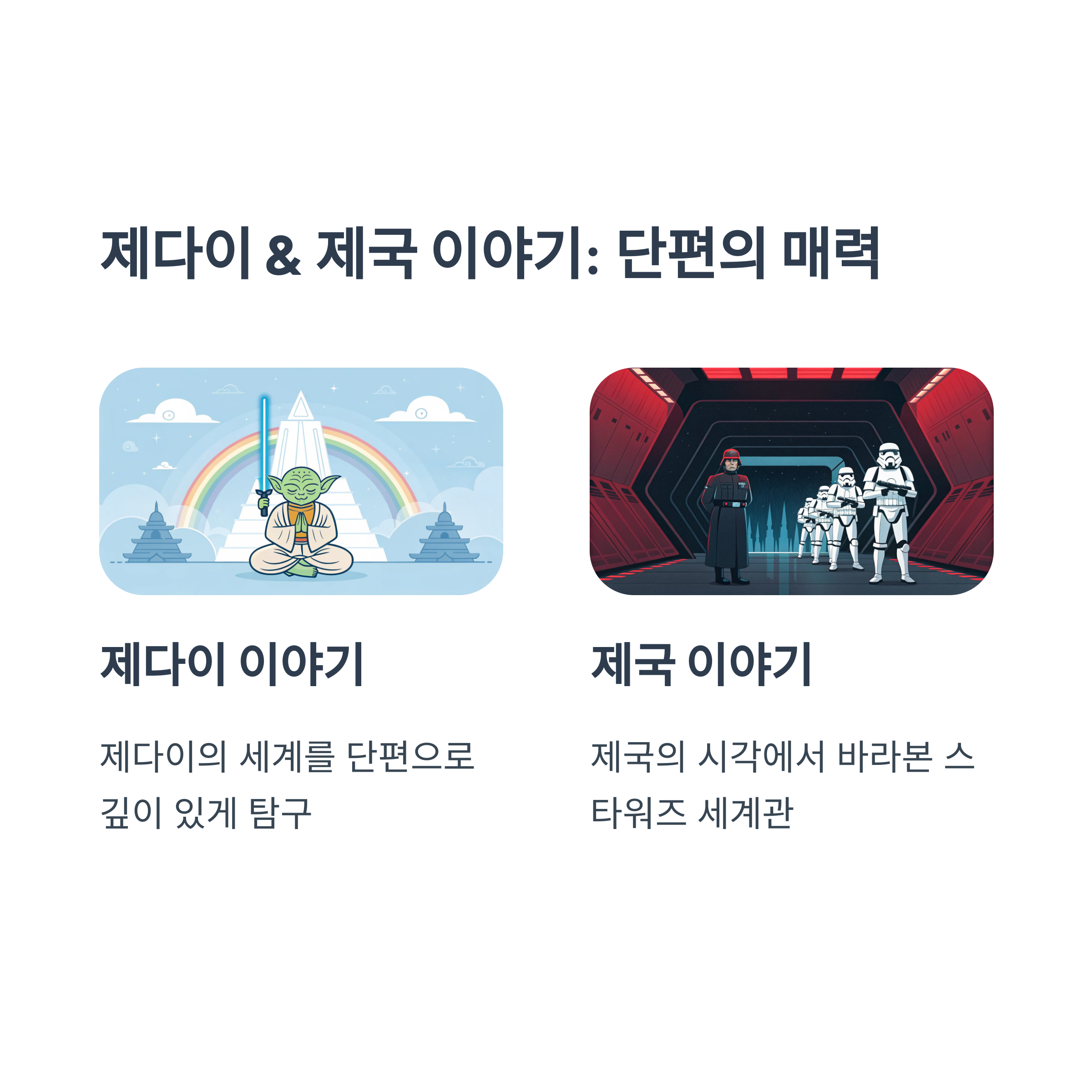 이 두 시리즈는 각각 제다이와 제국의 이야기를 단편 형식으로 다루며, 스타워즈 세계관의 다양한 시각을 제공합니다. 짧지만 강렬한 에피소드들은 팬들에게 새로운 통찰을 제공합니다.